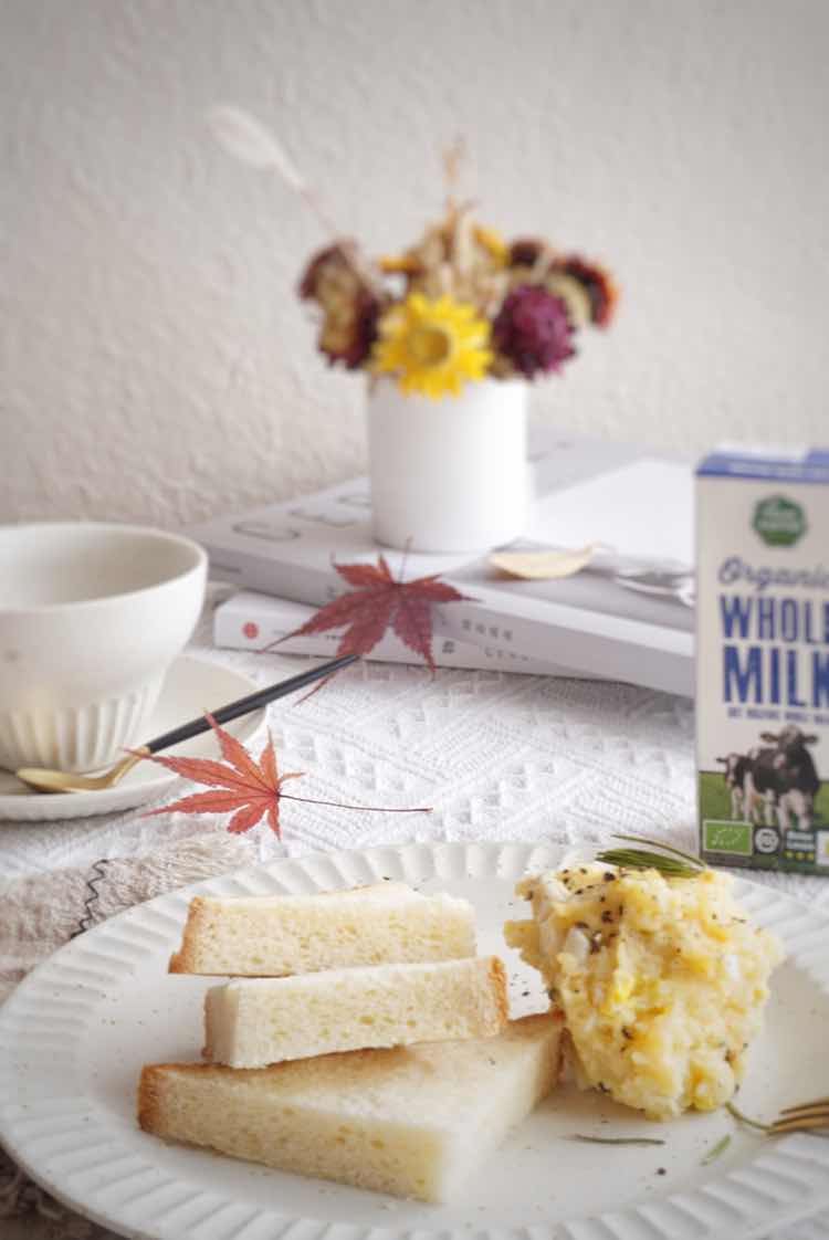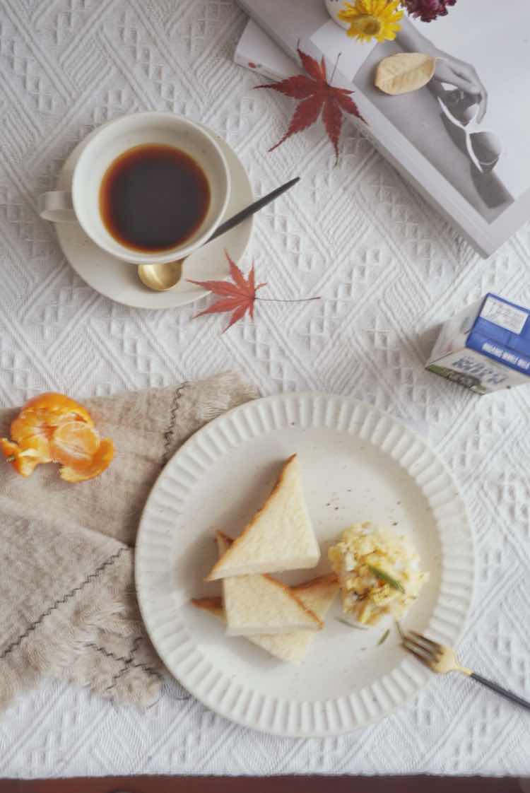 土豆泥鸡蛋沙拉,淡奶油吐司,自制的,纯牛奶乐荷家的,清咖,豆子是自己烘焙的