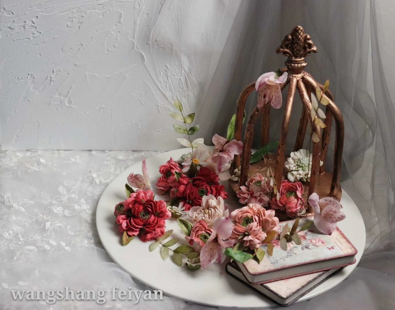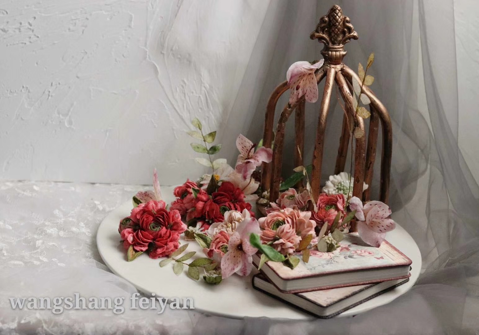 给巧克力鸟笼配了个复古红的毛茛