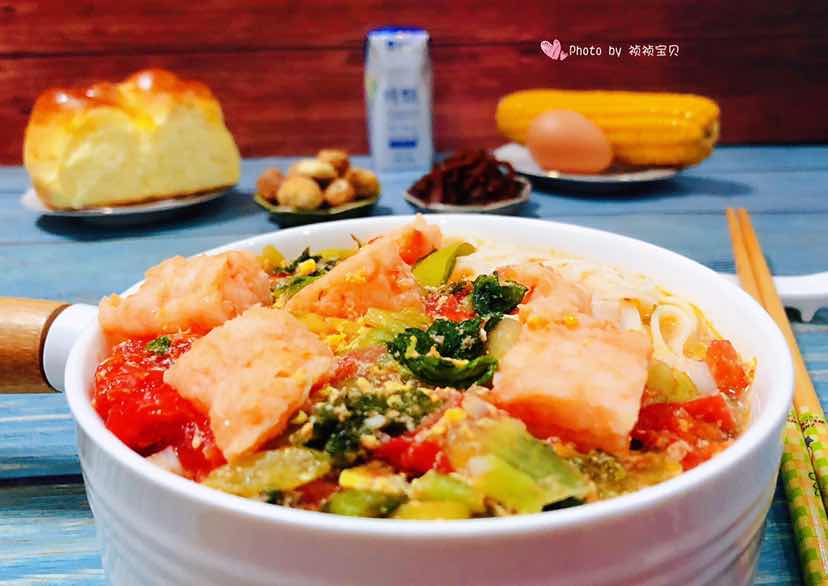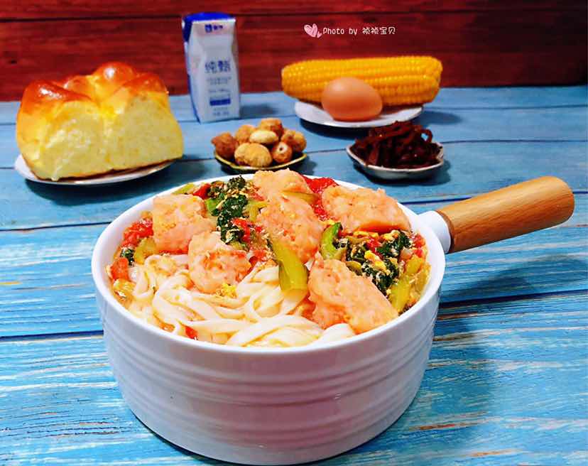 虾滑鸡蛋时蔬面
