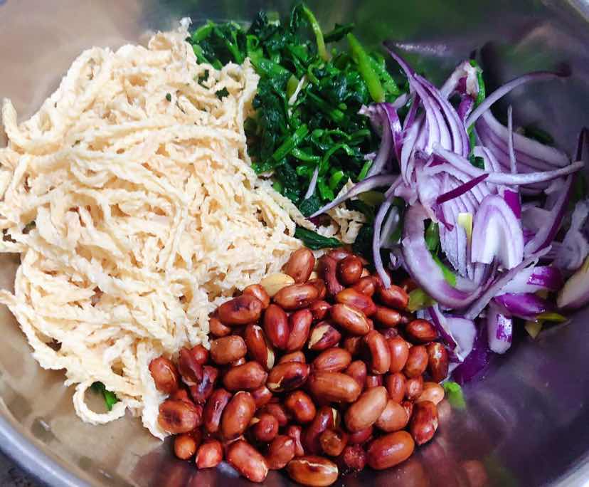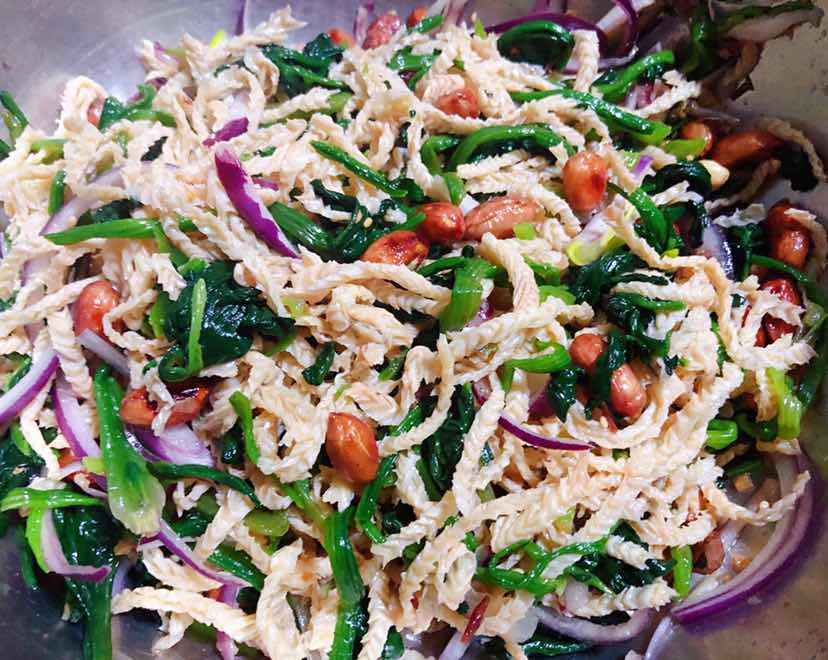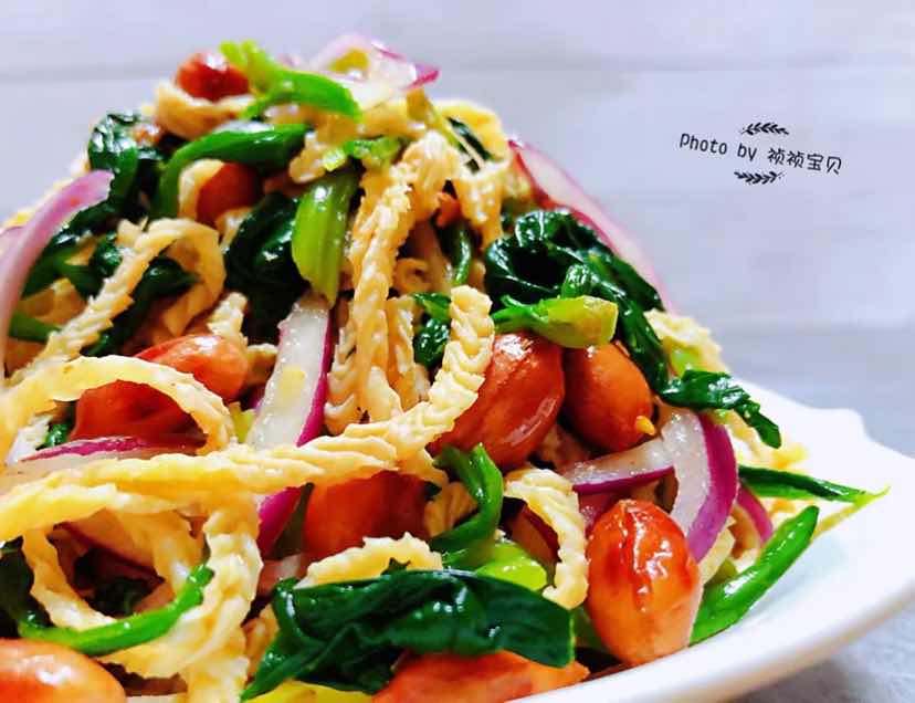 菠菜花生米洋葱拌羊肚丝的制作方法