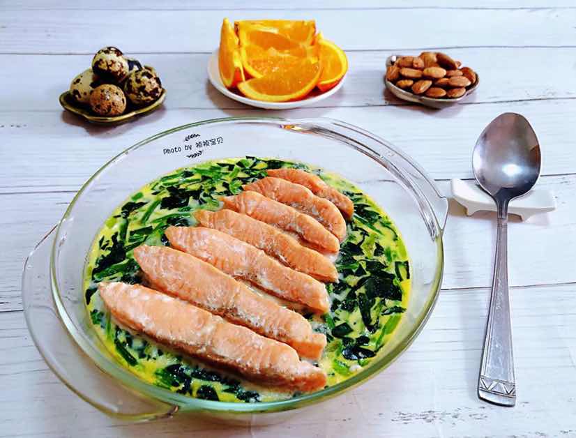 三文鱼菠菜蒸蛋羹的制作方法