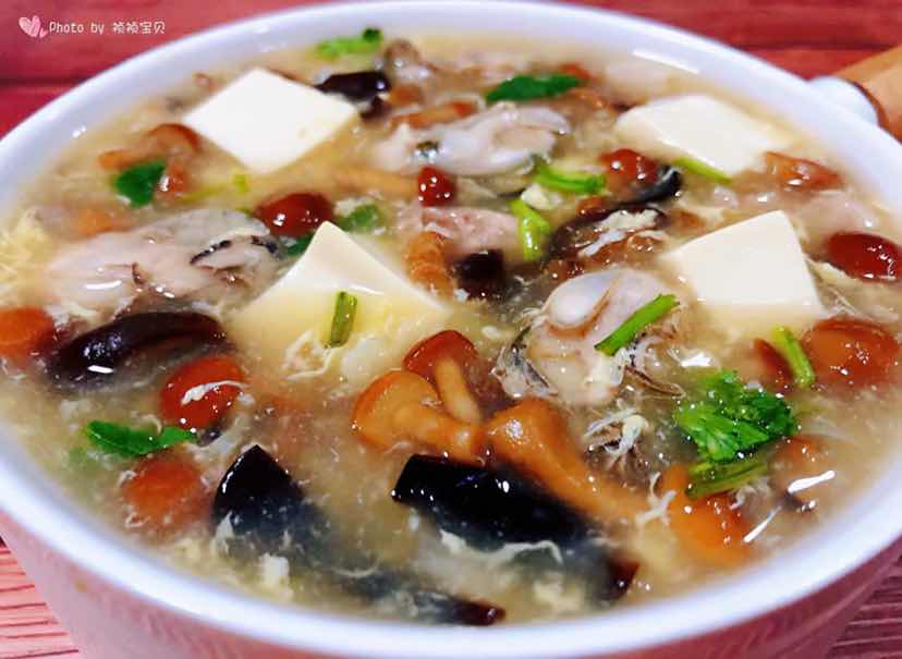 滑子蘑鲜肉牡蛎豆腐羹的制作方法