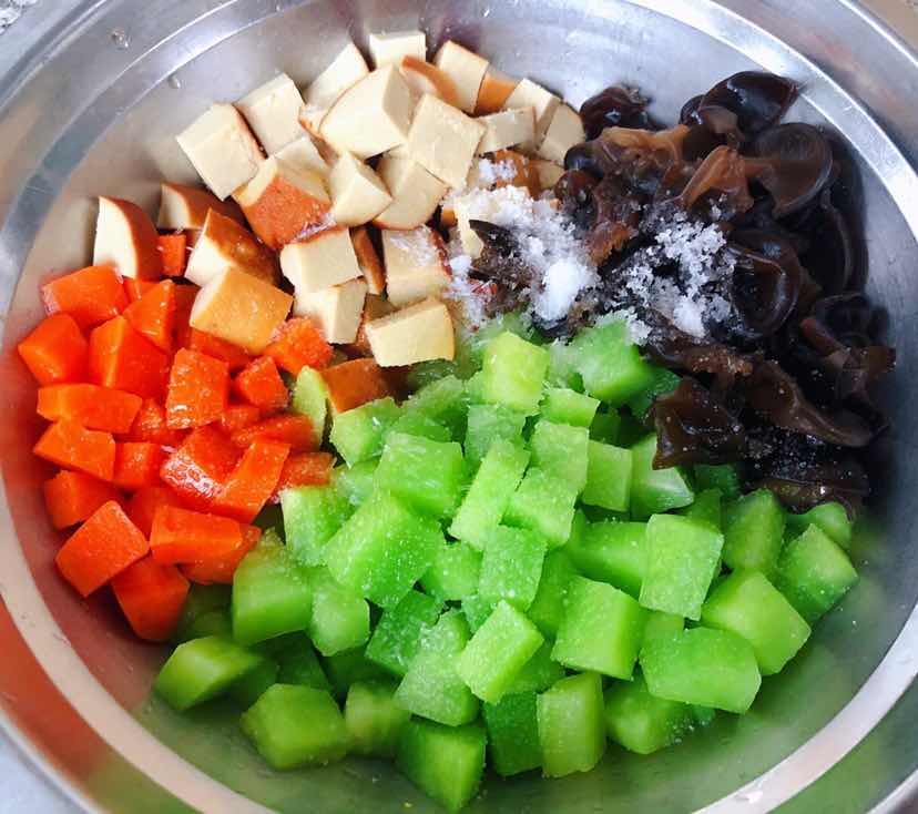莴笋拌素鸡胡萝卜木耳的制作方法