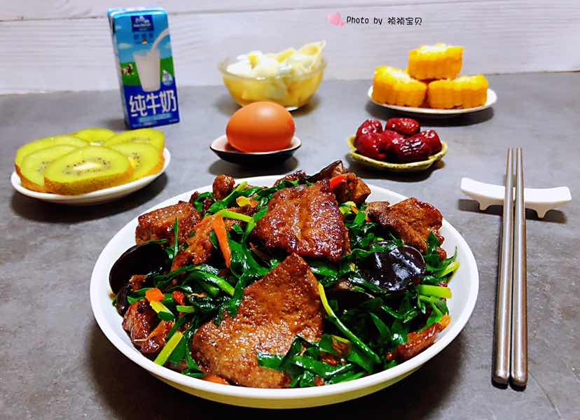 世界充满了记忆和遗忘,可我们的胃不会遗忘。思念某种味道的时候,不妨用记忆去填充胃,用满满的胃去撑起孤独的心。 今日早餐:韭菜炒肝尖+三鲜馄饨+玉米+鸡蛋+脆枣+猕猴桃+牛奶