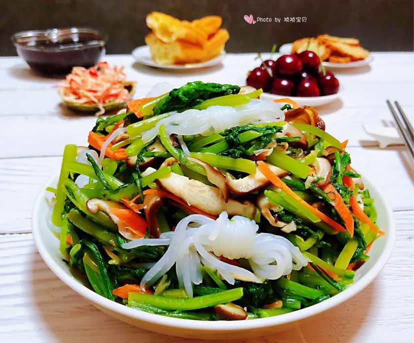 蒜泥茼蒿拌香菇魔芋