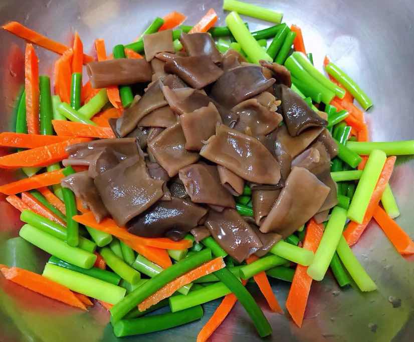 海肠拌蒜苔胡萝卜的制作方法