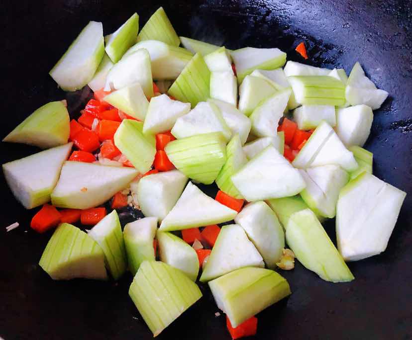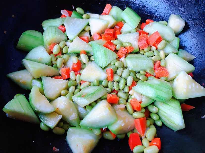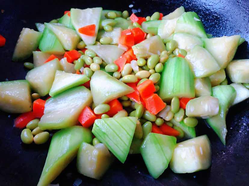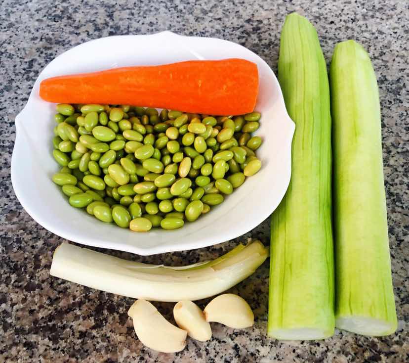 丝瓜炒黄豆胡萝卜的制作方法