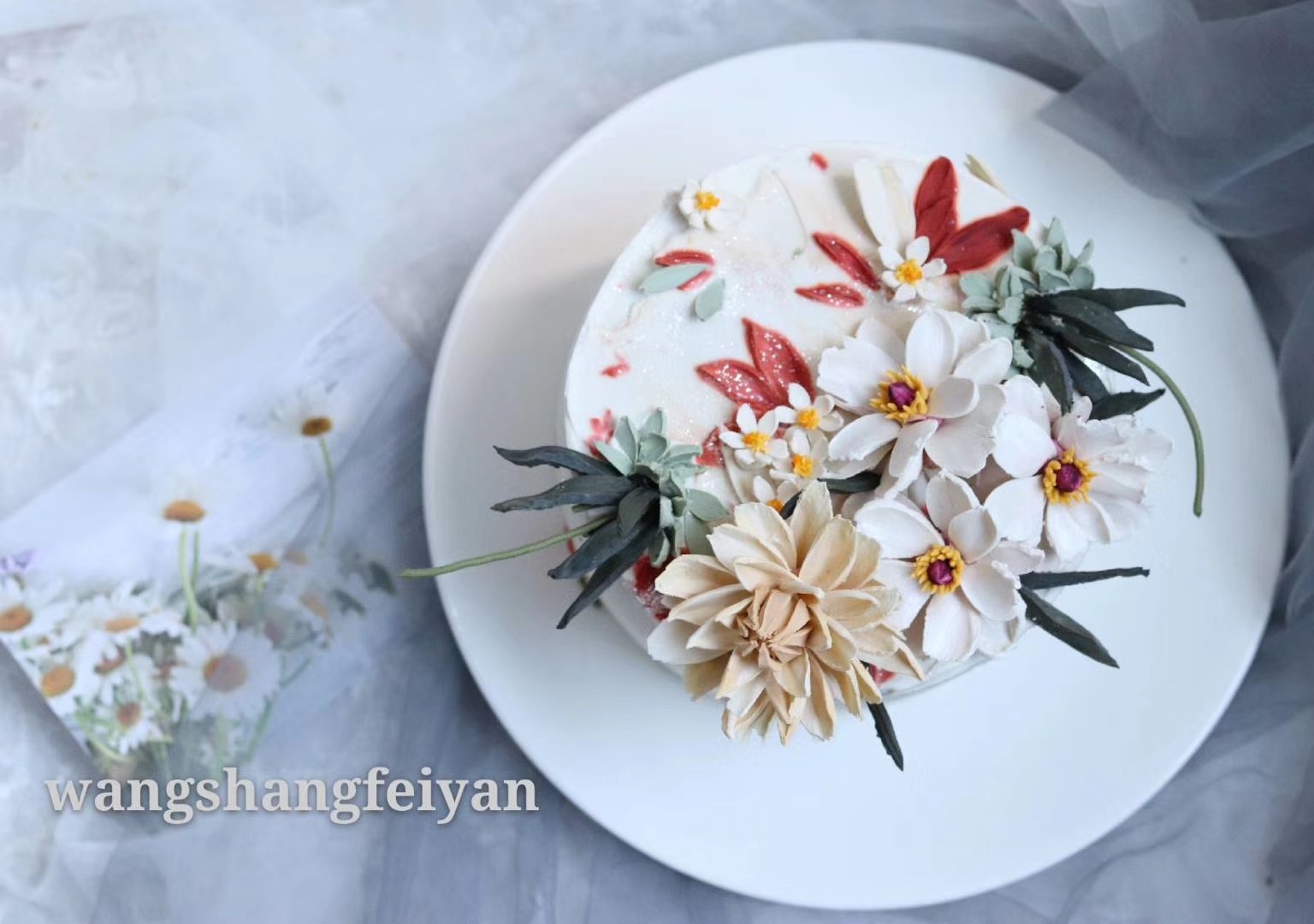 刮刀花--皇冠贝母,大丽花花,雏菊和蝴蝶毛茛