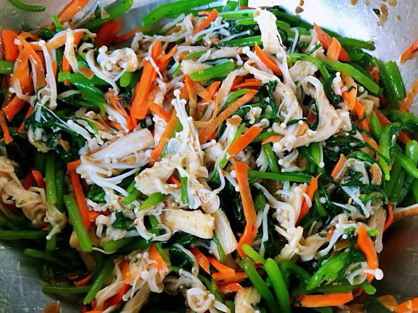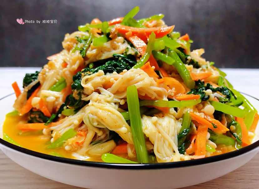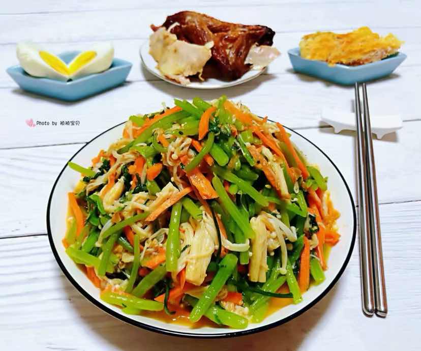 茼蒿凉拌胡萝卜金针菇的制作方法