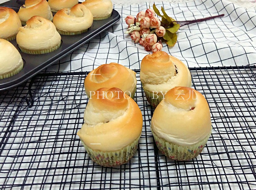 我用的白燕面包粉和风筝低粉,牛奶量加到210克。看出来满屋飘香。闻起来就好吃。谢谢老师的方子。