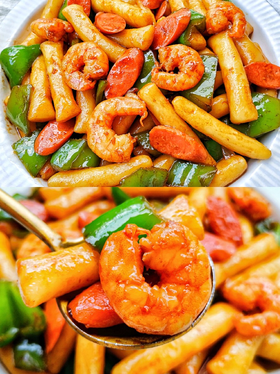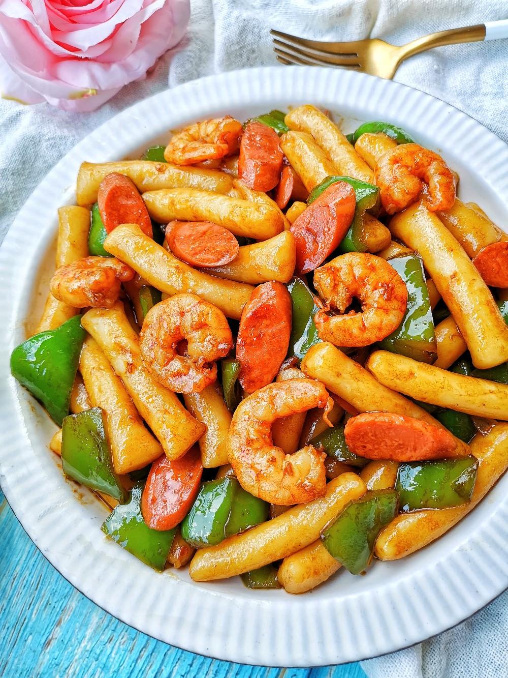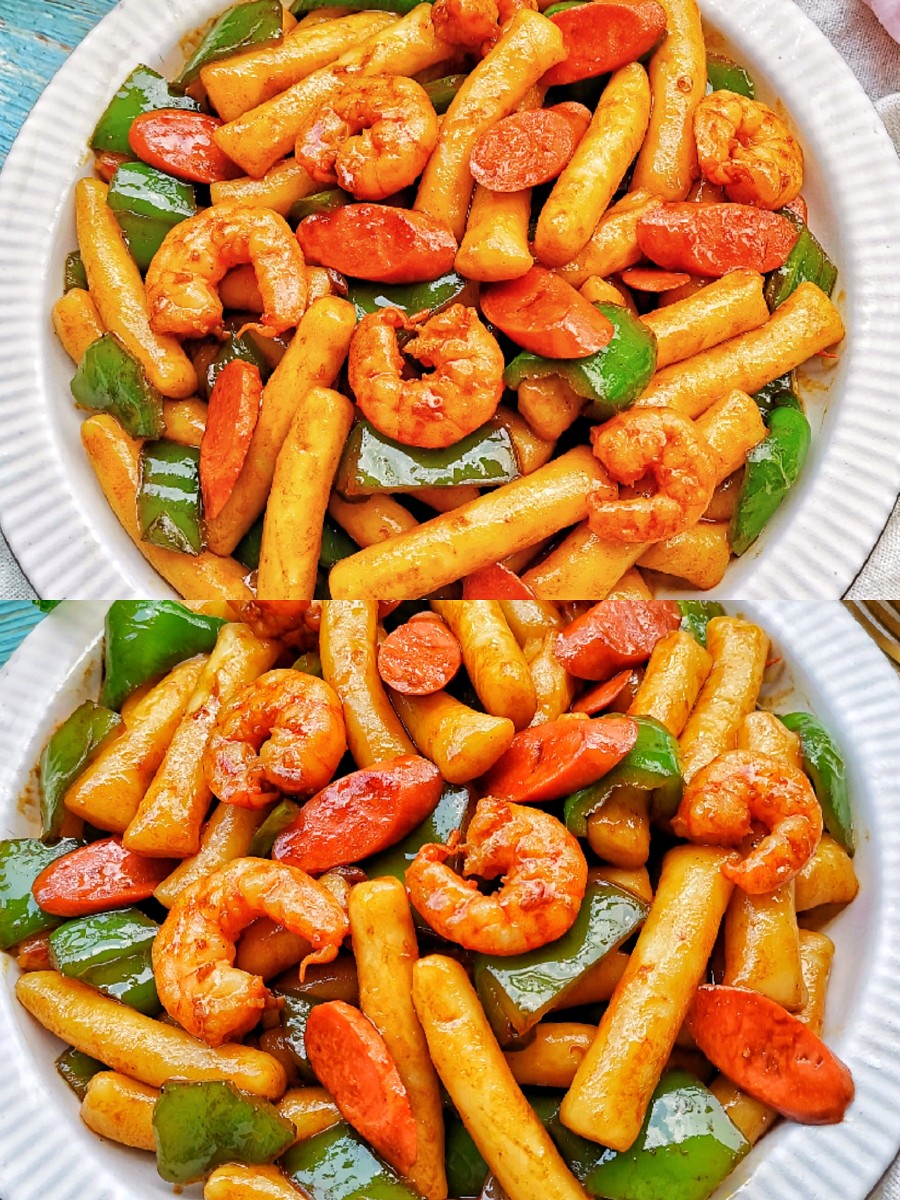 今天西蘭分享一道超简单快手的黑椒虾仁炒年糕,5分钟就能搞定,简单快手又好吃,来上一盘,真的超满足~