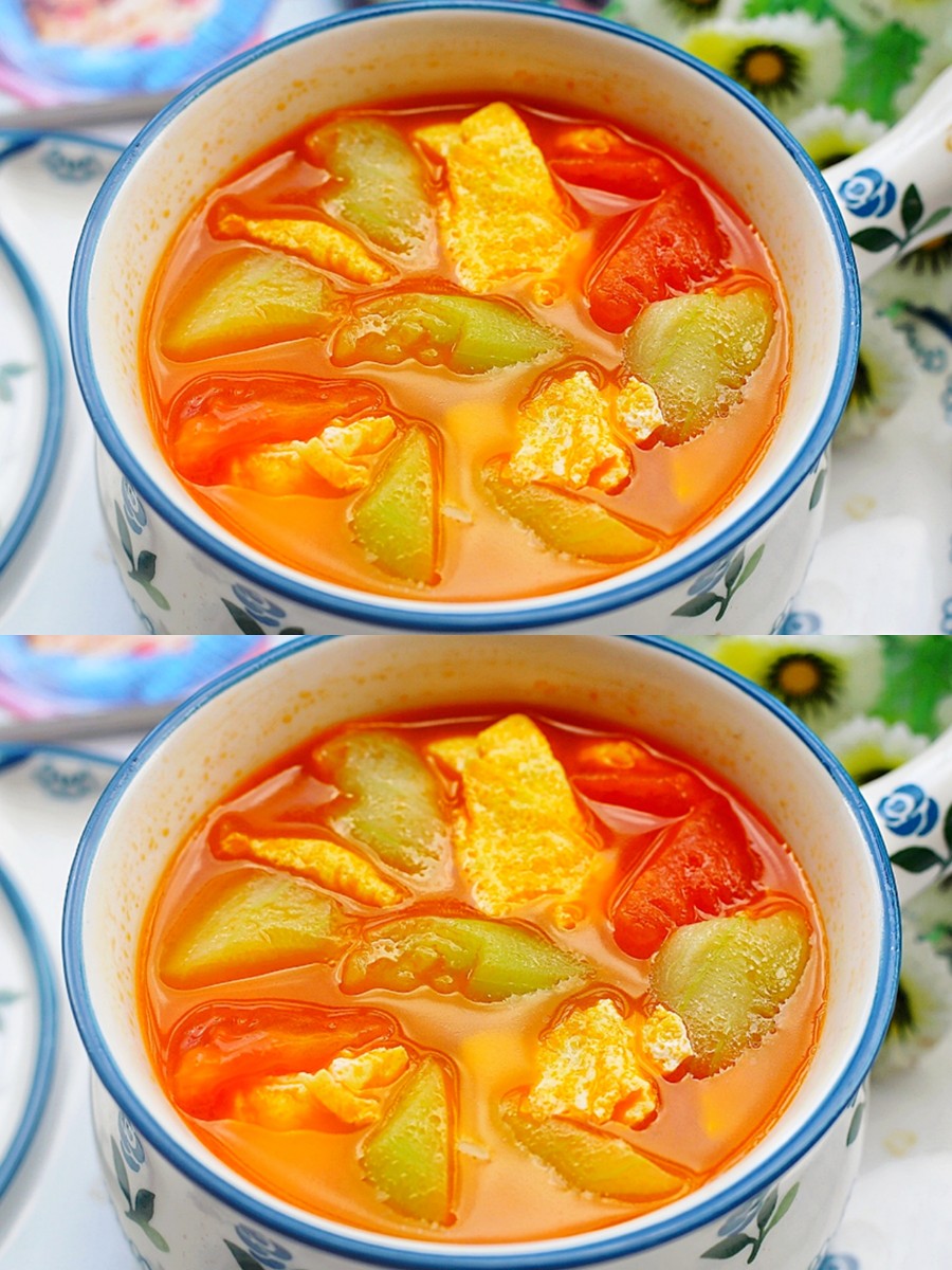 5分钟快手!低脂美味的番茄丝瓜鸡蛋汤~