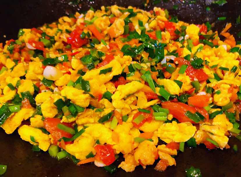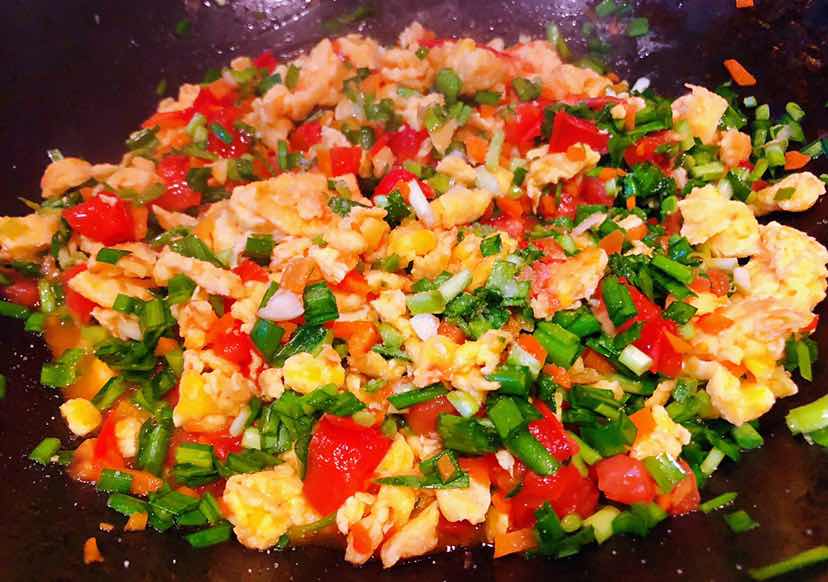 韭菜番茄炒蛋吐司的制作方法