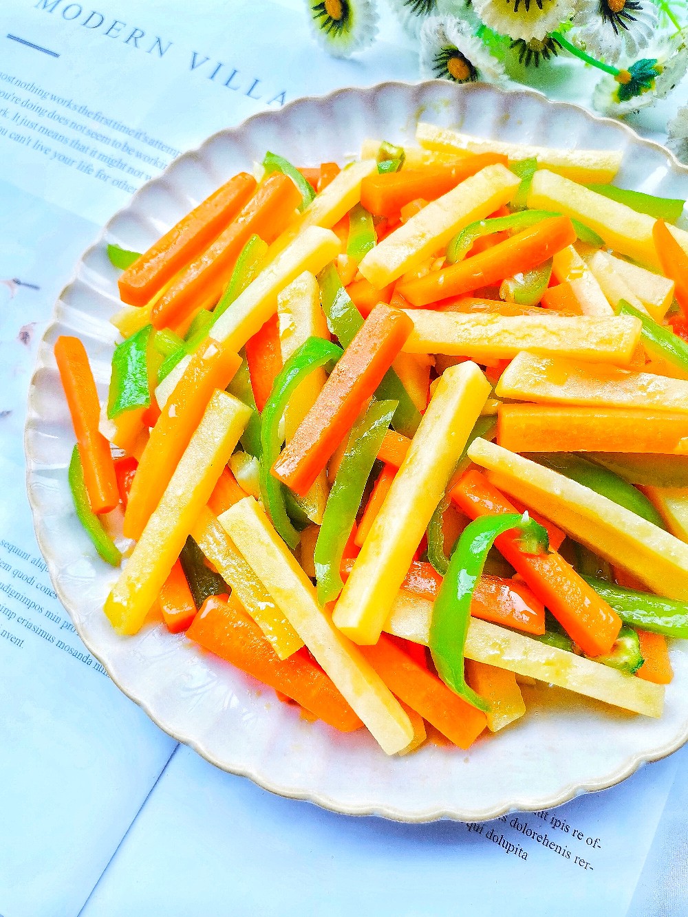 零失败!5分钟家常快手菜!简单美味的土豆胡萝卜条~