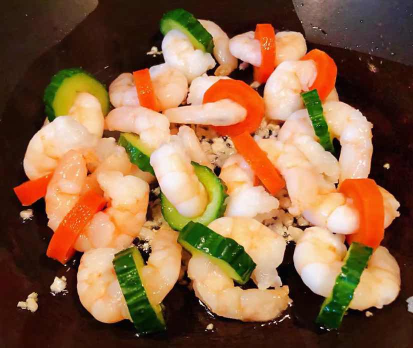 黄瓜胡萝卜炒虾仁的制作方法太棒了