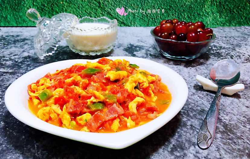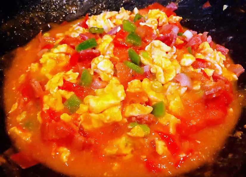 培根青椒西红柿炒蛋的制作方法