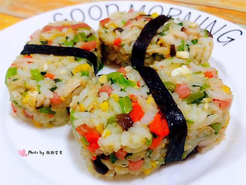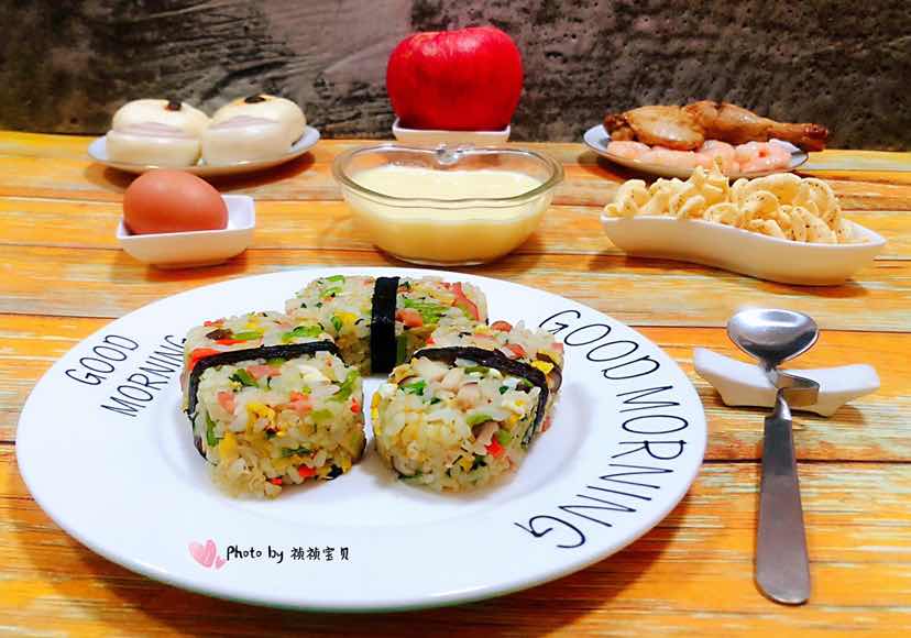 香肠菌菇时蔬鸡蛋米堡