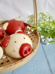 白色面团 普通面粉 糖 水 酵母 红色面团 普通面粉 红曲粉 糖 水 酵母