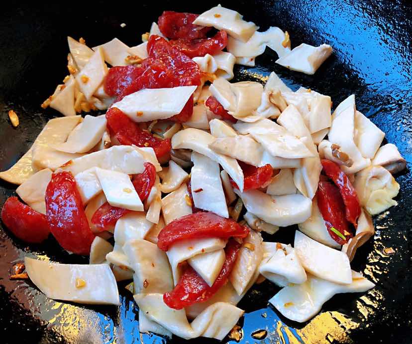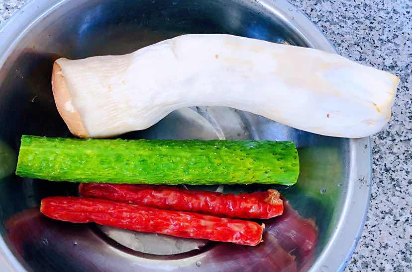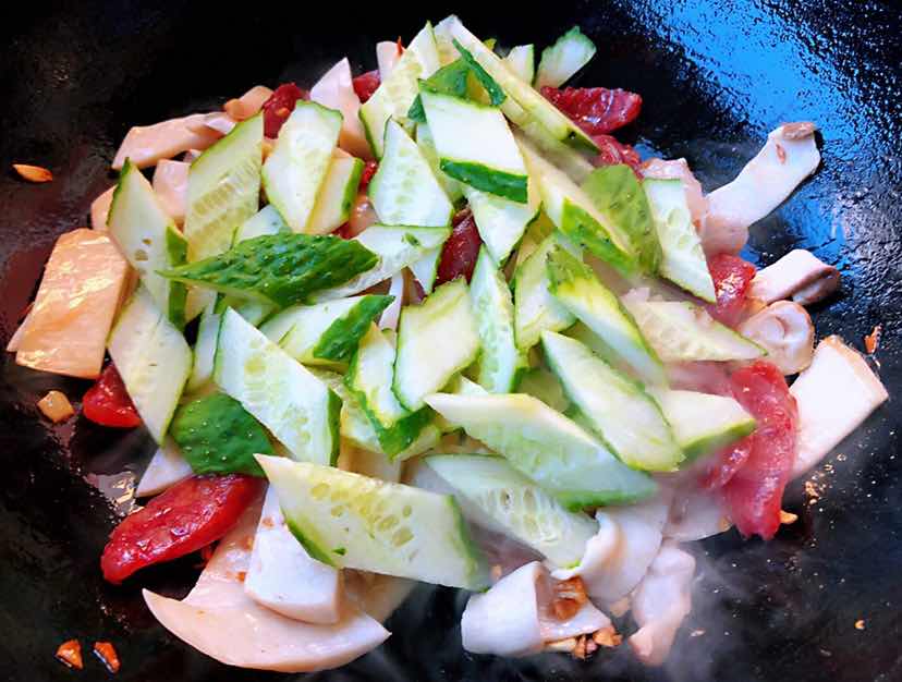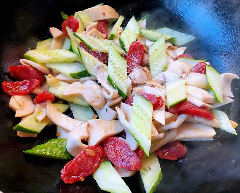 腊肠黄瓜炒杏鲍菇的制作方法