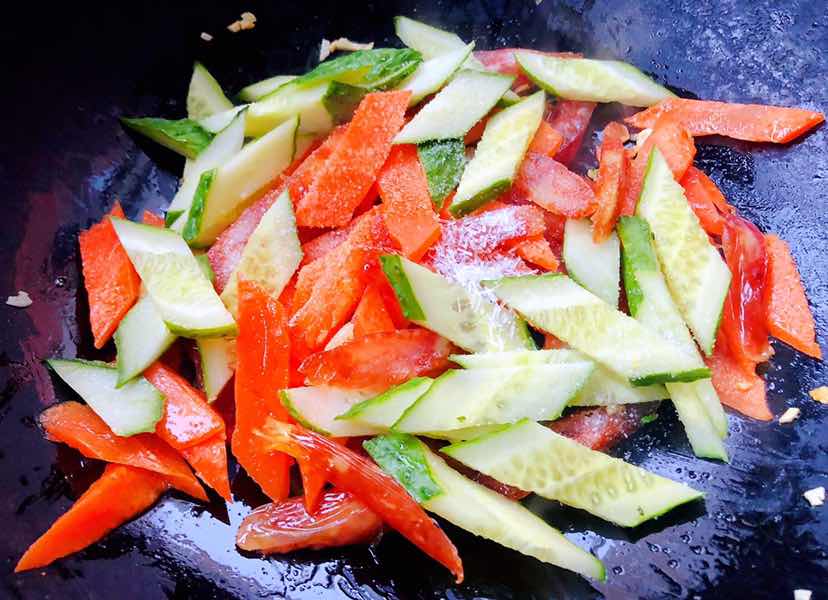 黄瓜胡萝卜炒腊肠的制作方法