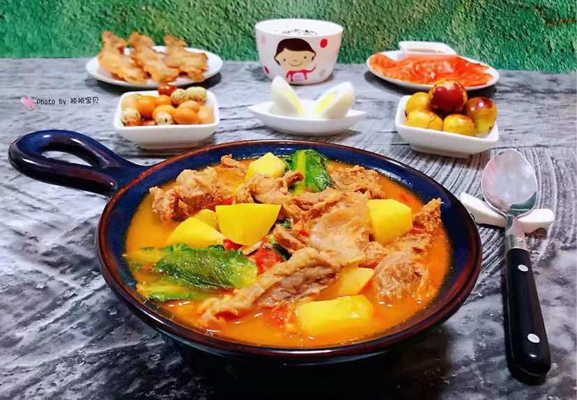 西红柿土豆青菜炖牛肉