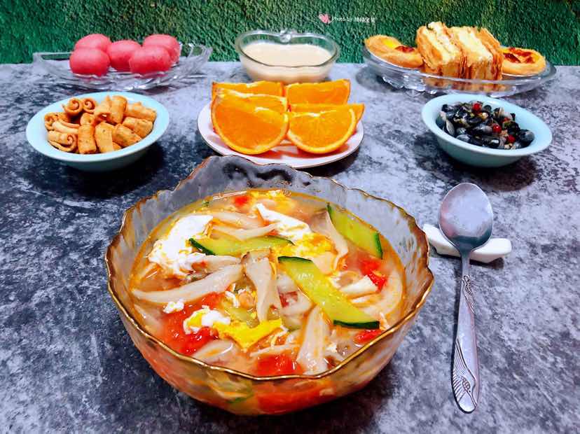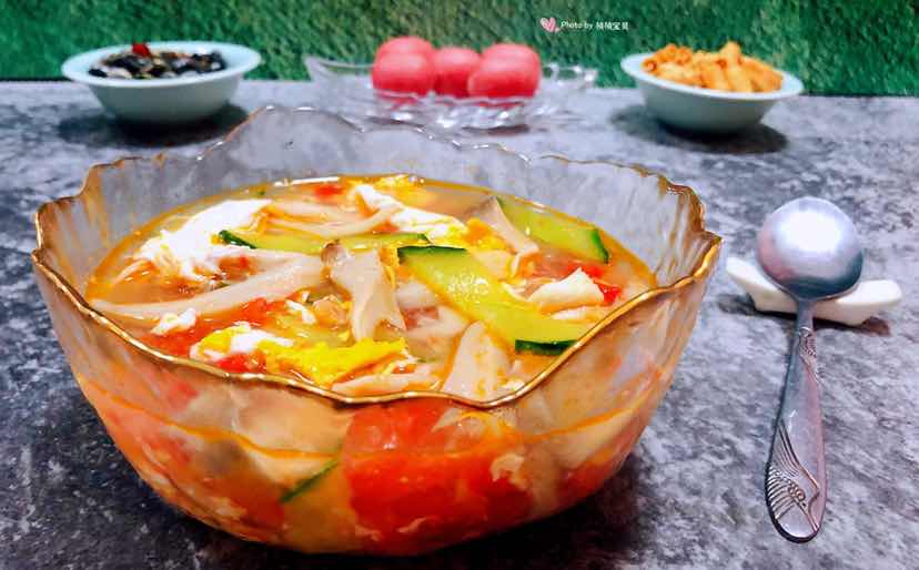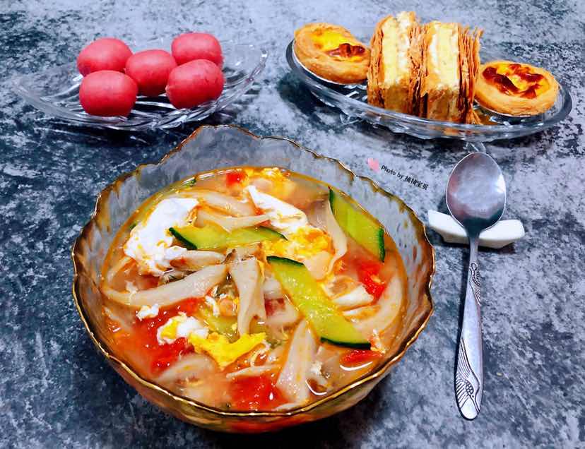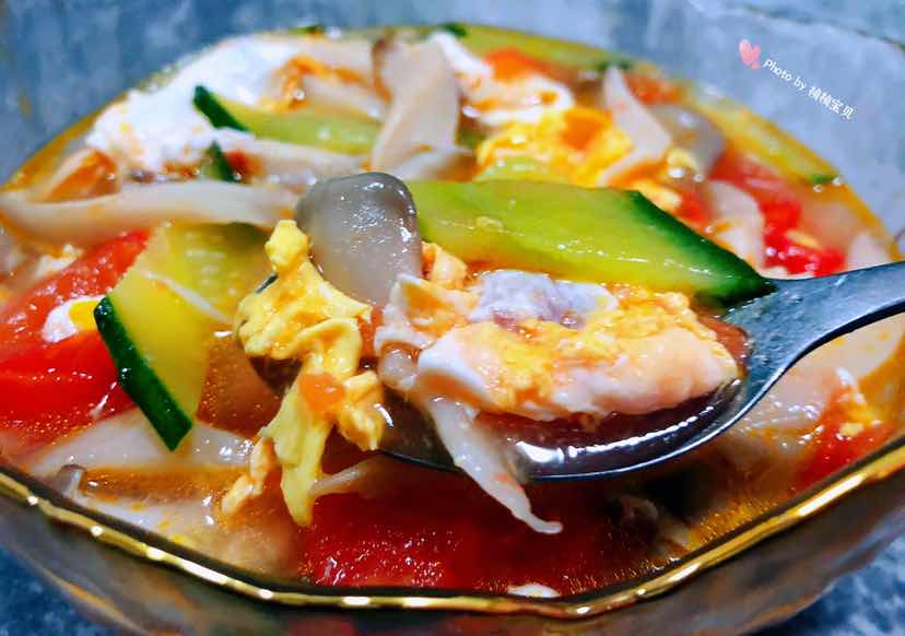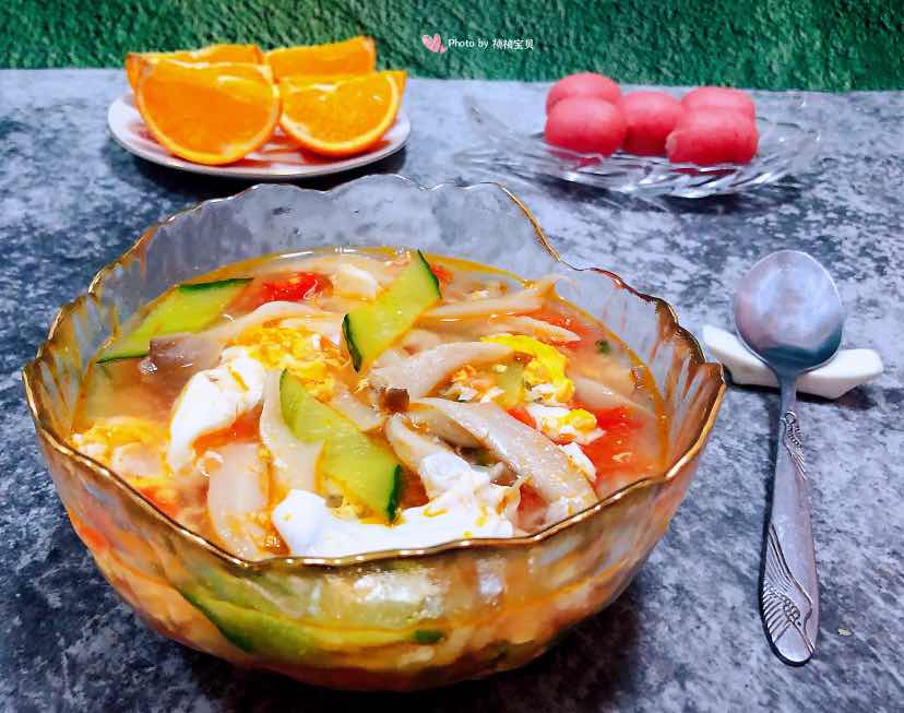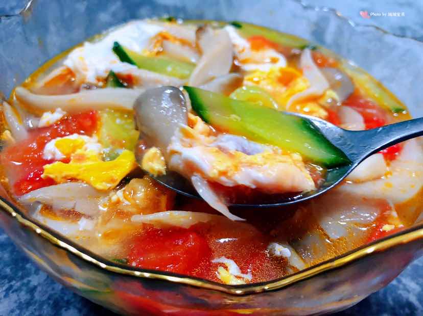 西红柿平菇黄瓜蛋花汤