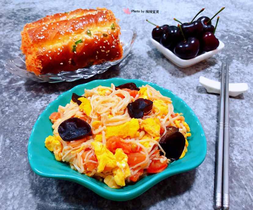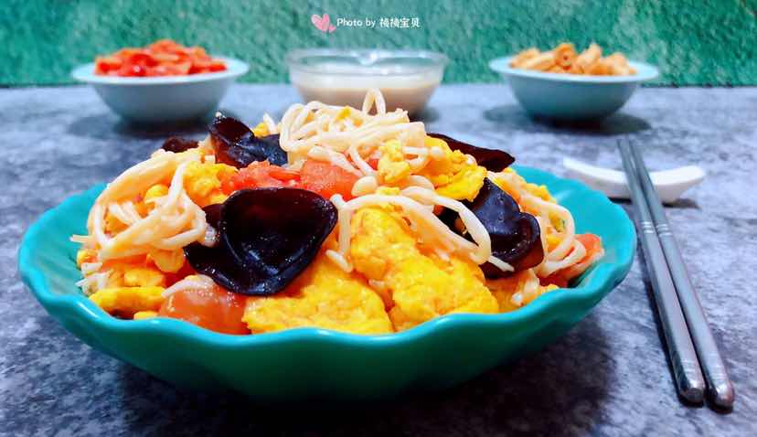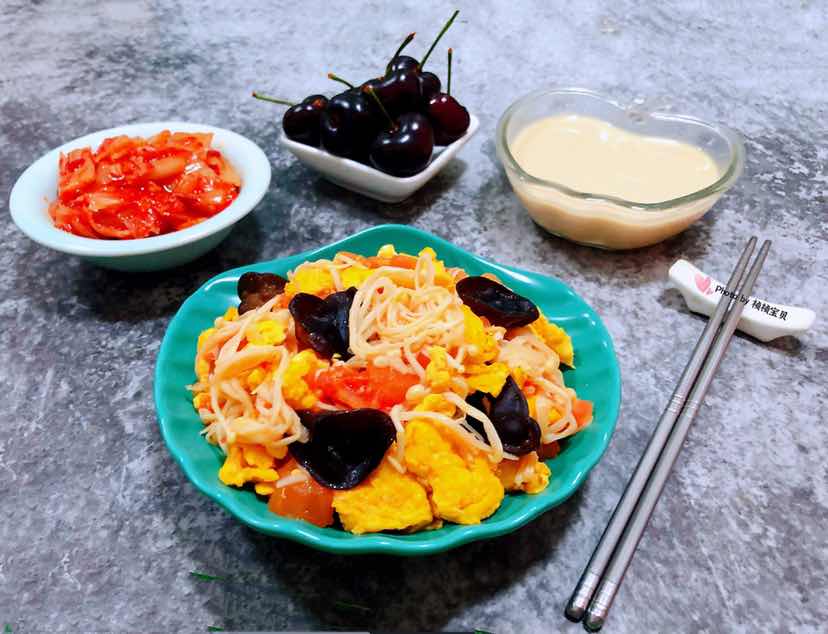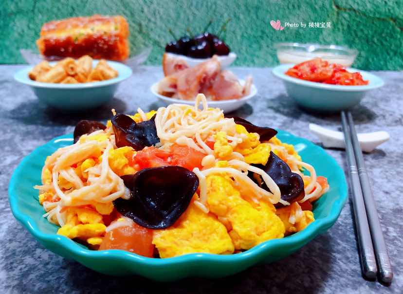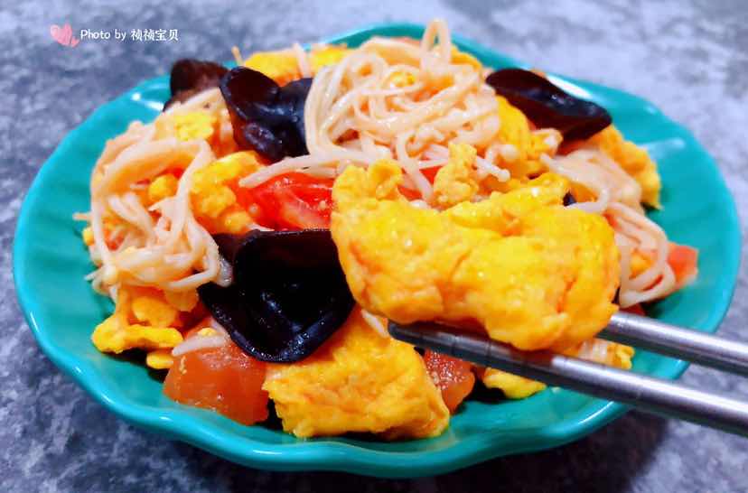 西红柿金针菇木耳炒蛋