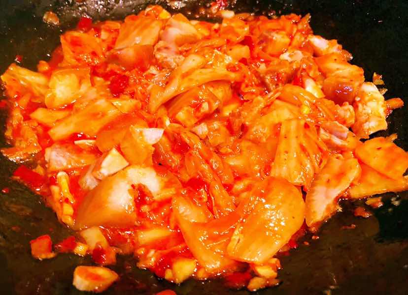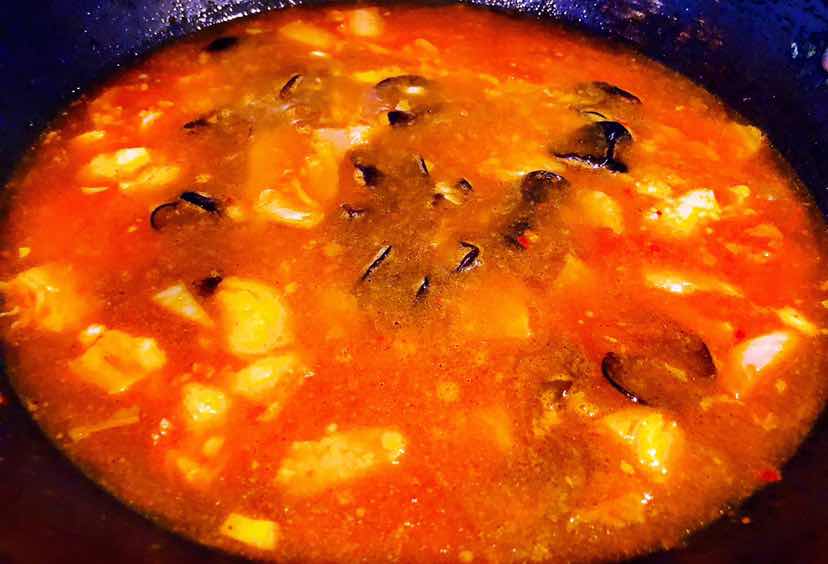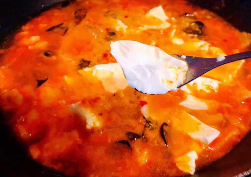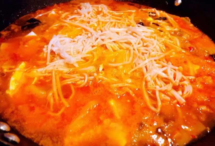 辣白菜金针菇猪头肉豆腐汤的制作方法