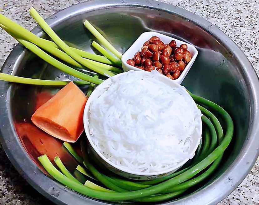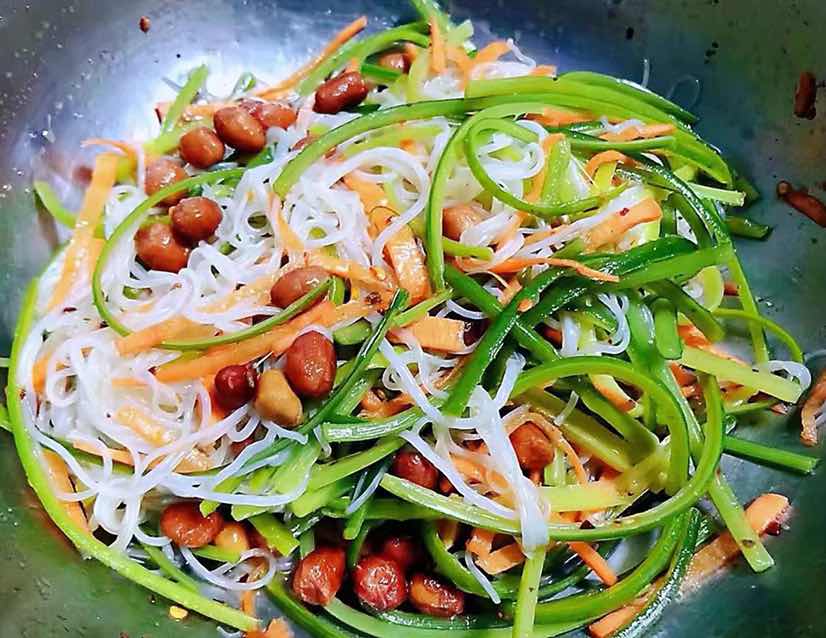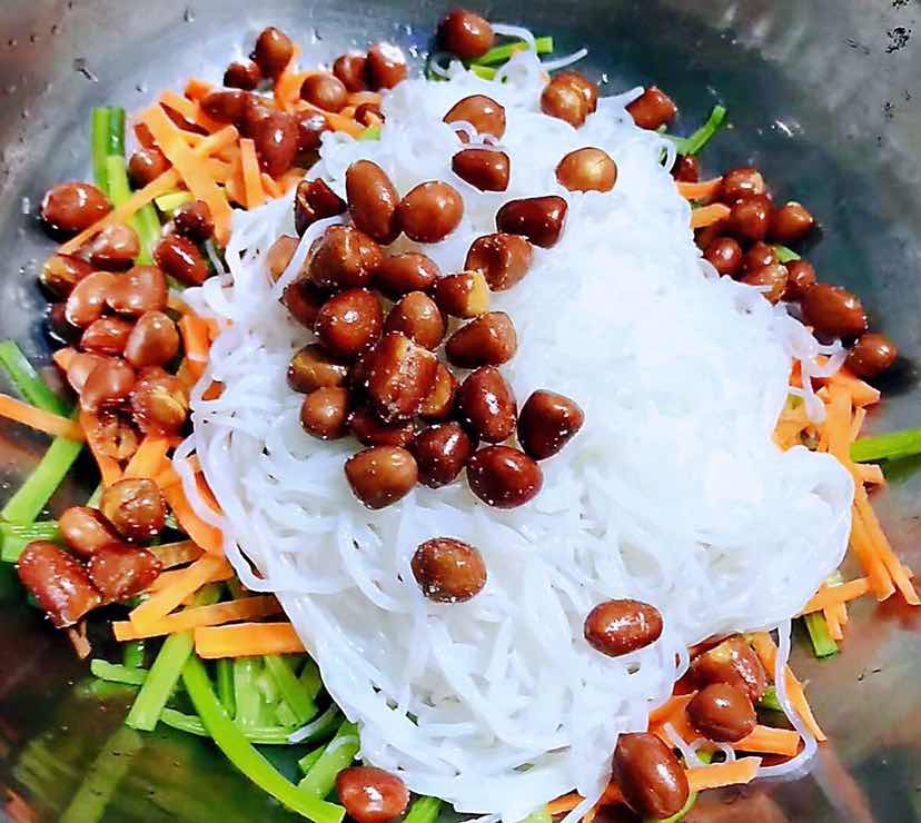 蒜苗粉丝拌花生米的制作方法