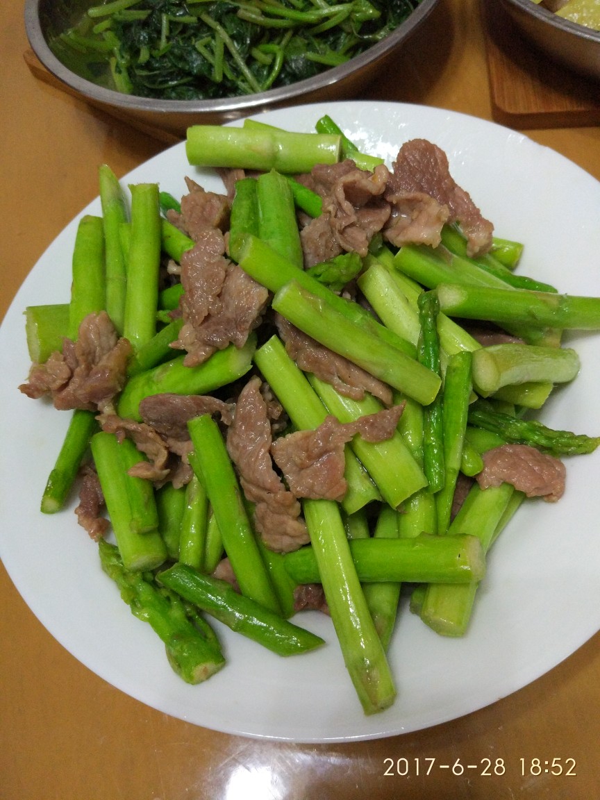 现在是吃芦笋的时候,清炒,炒肉片都是不错的。