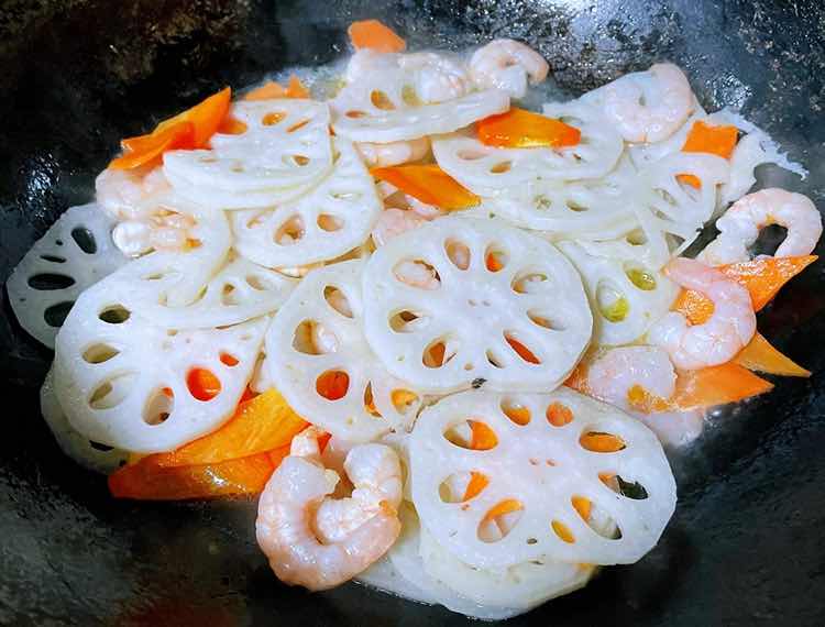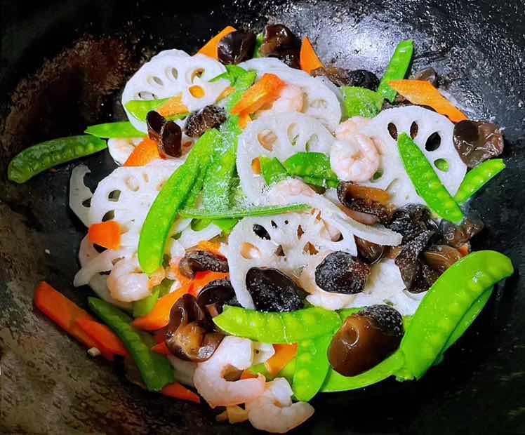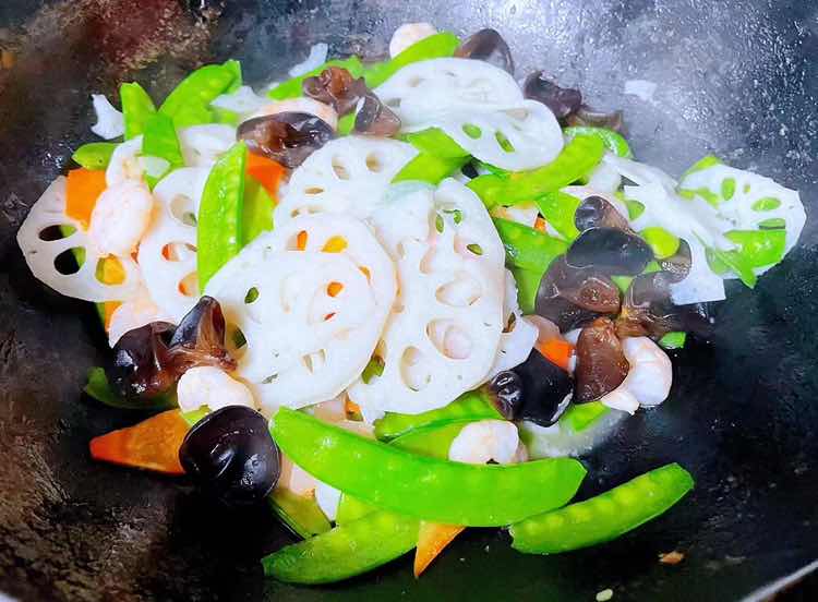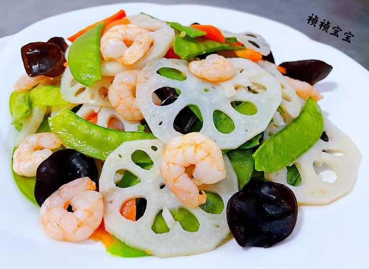 荷兰豆藕片木耳胡萝卜炒虾仁