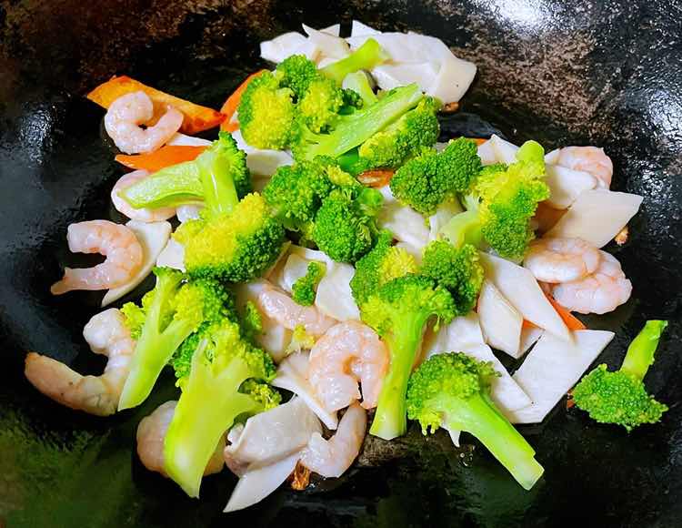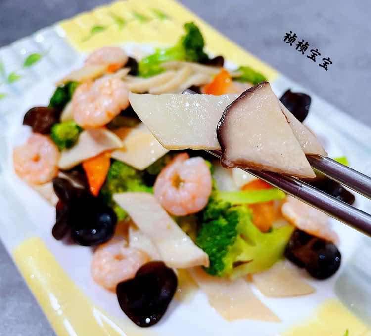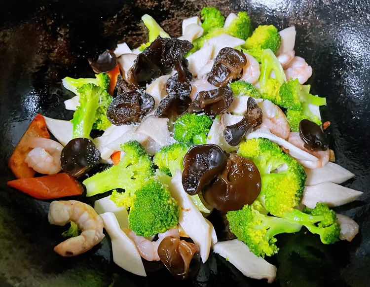 西兰花杏鲍菇木耳炒虾仁