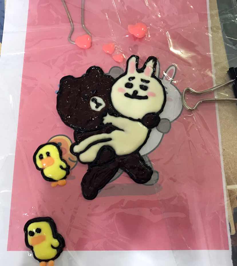 本来打算做芝士转印,结果布朗熊部分用甘纳许做的,冻好完全脱不下来。还好有Plan B。淋面大法好,适合完全无准备时救场。