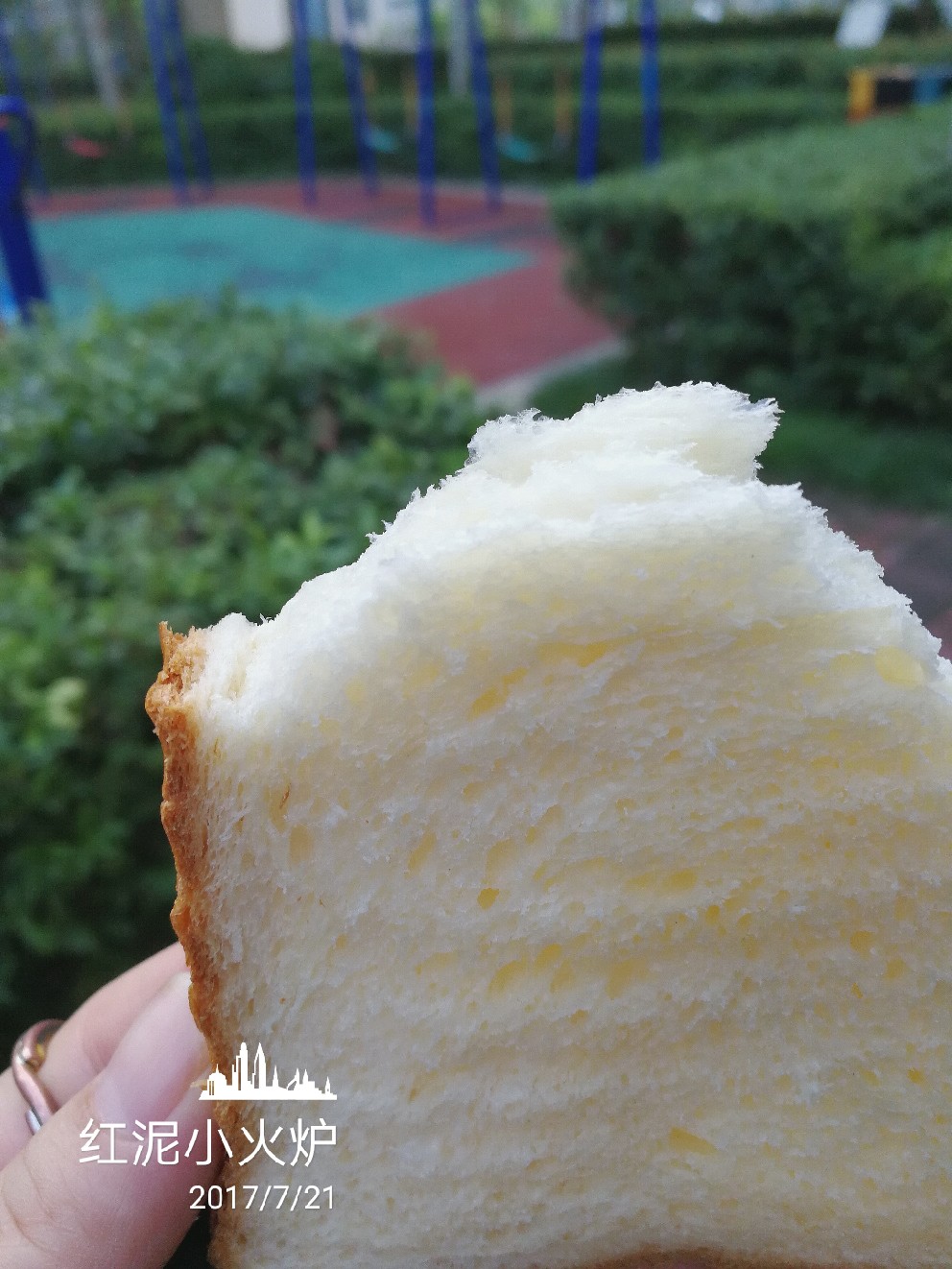 从未做过吐司,觉得不是简单活,这次小耳老师的课认真的听了,下了课立即就把刚买的模具找出,立马操练。半夜2点烤好,早5点太阳还没出来,就迫不及待拍照,6点就啃着面包出门,成就感满满,幸福感满满。