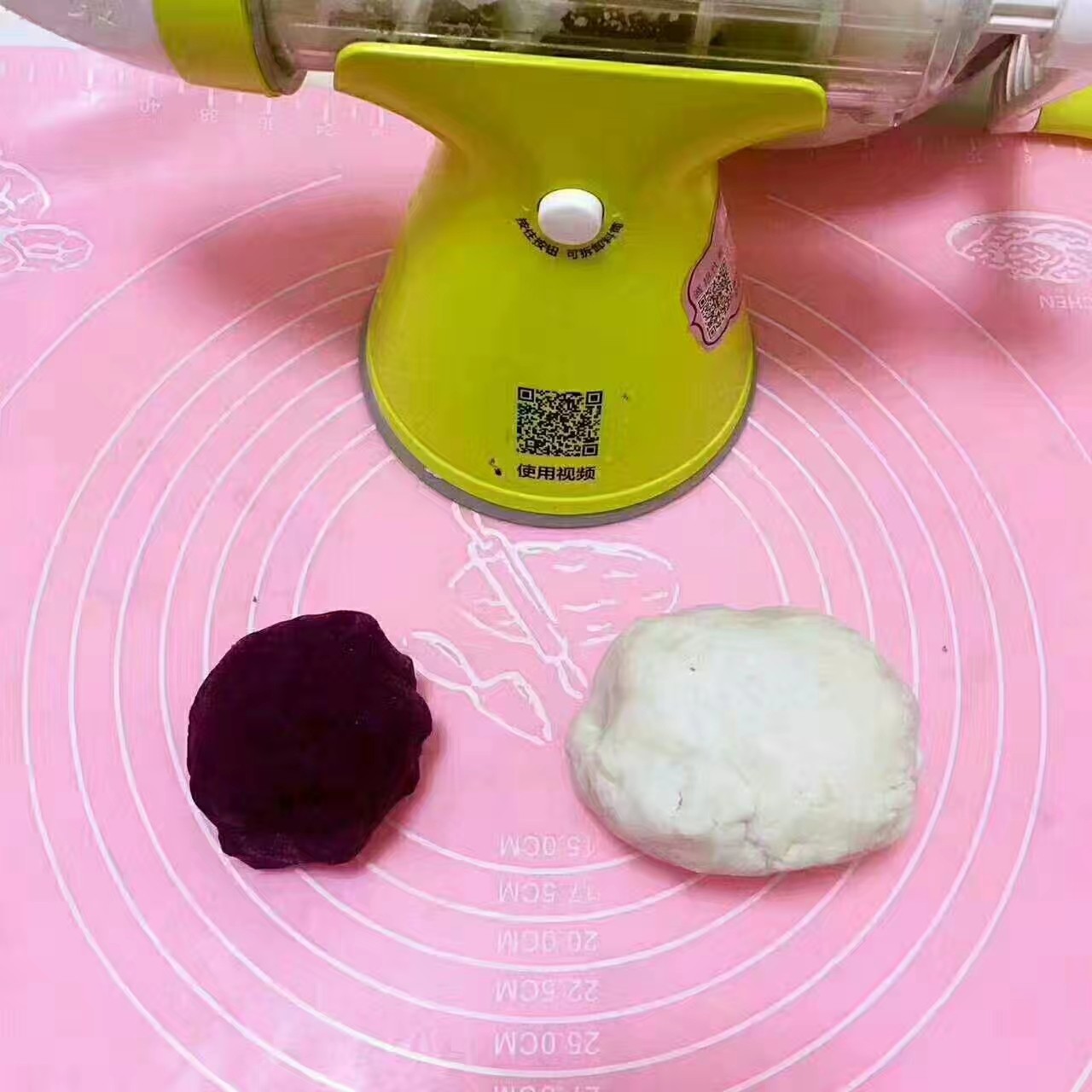 分享一款可口的小点心~山药紫薯卷[色] 用果语原汁机摇泥 非常的细腻 不用加水,直接操作哦 你家的电动榨汁机做得到吗?