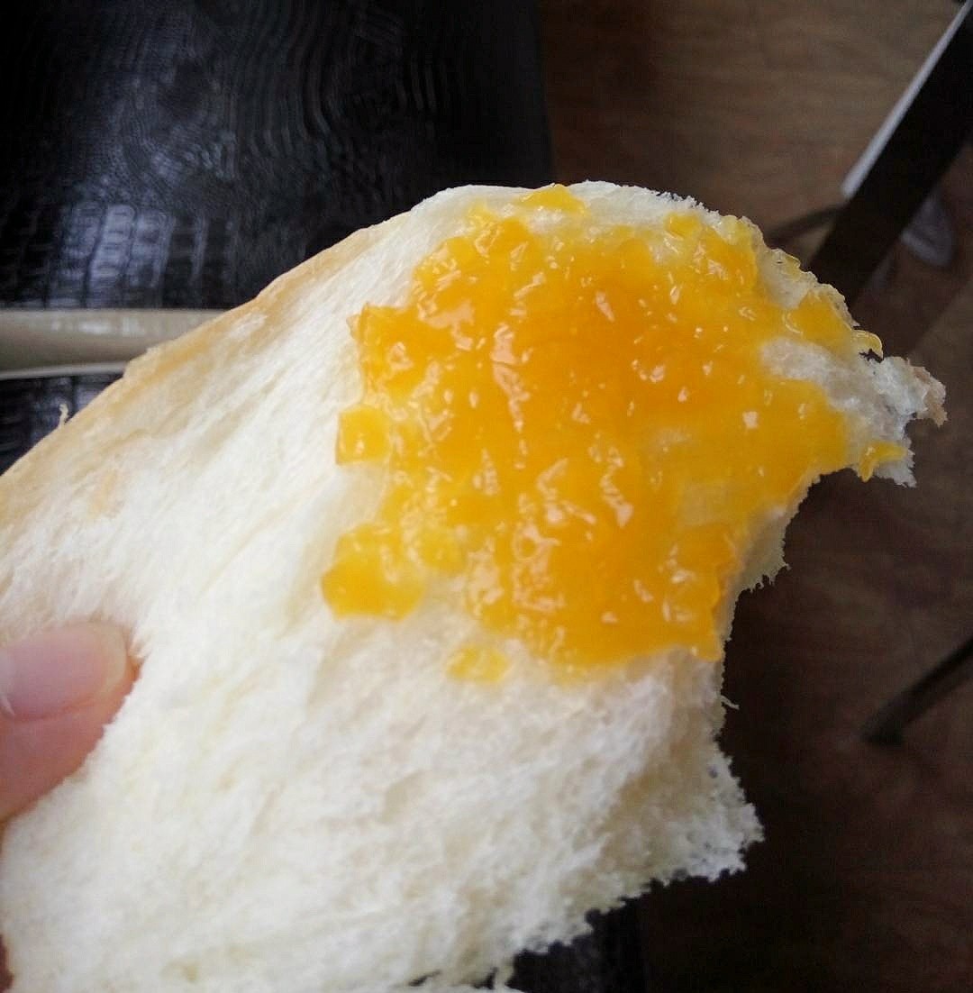 谢老师分享,沾上自制的黄桃酱,美味