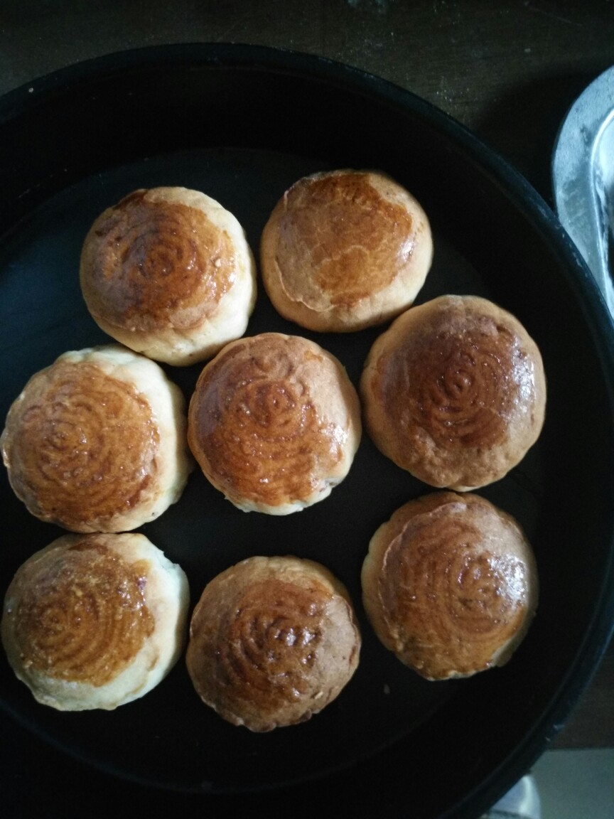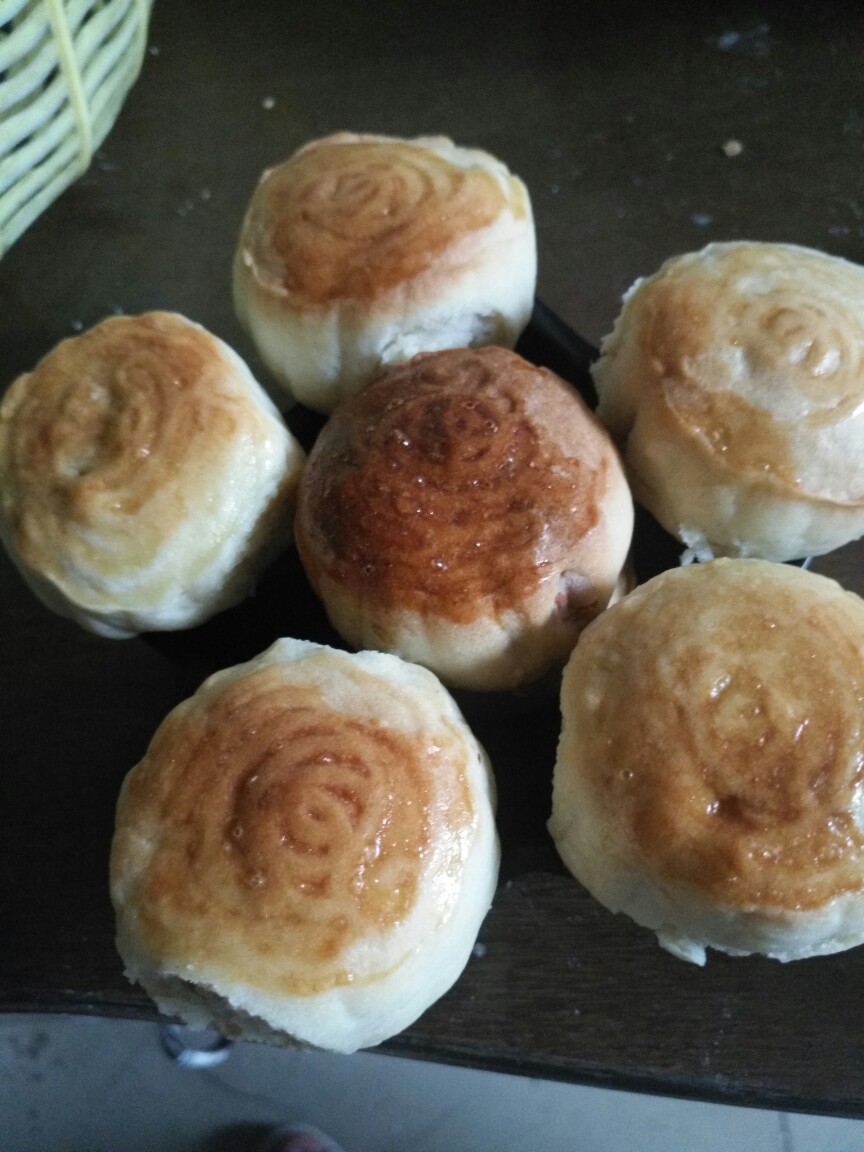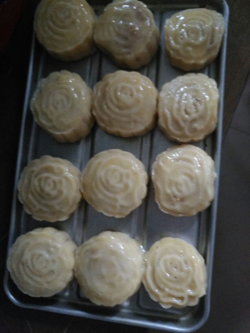 做的迷你月饼 馅料比较简单 花生 芝麻 糖 第一次做 还不错挺好吃的