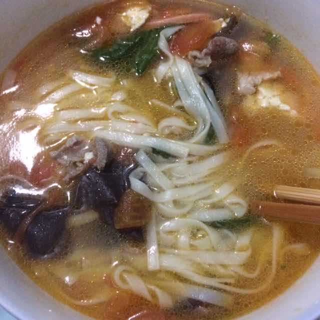 买的粉 又加了辣椒和火腿肠、菜叶,简直好吃死了