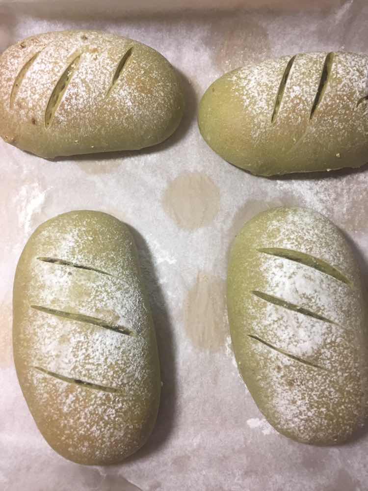 高筋面粉 抹茶粉 盐 酵母 冰水 全蛋液 黄油 细砂糖