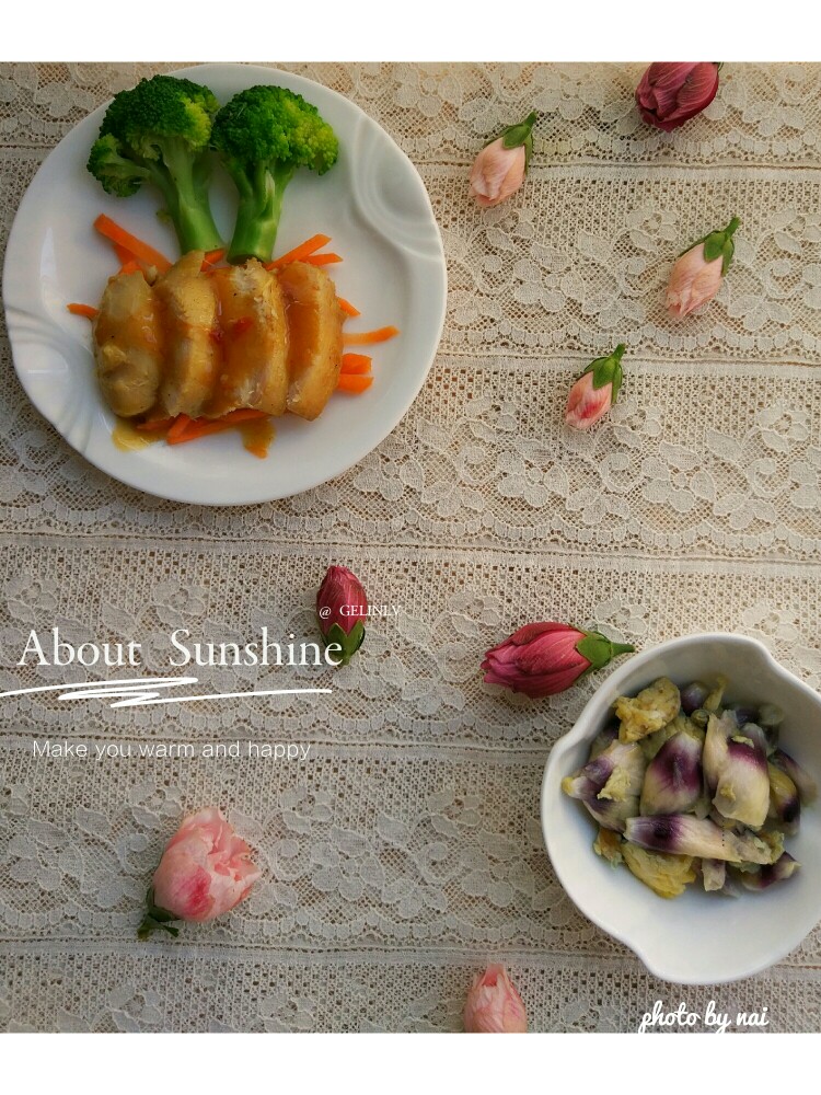 煎鸡胸肉,木槿花炒蛋