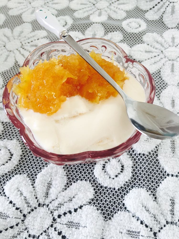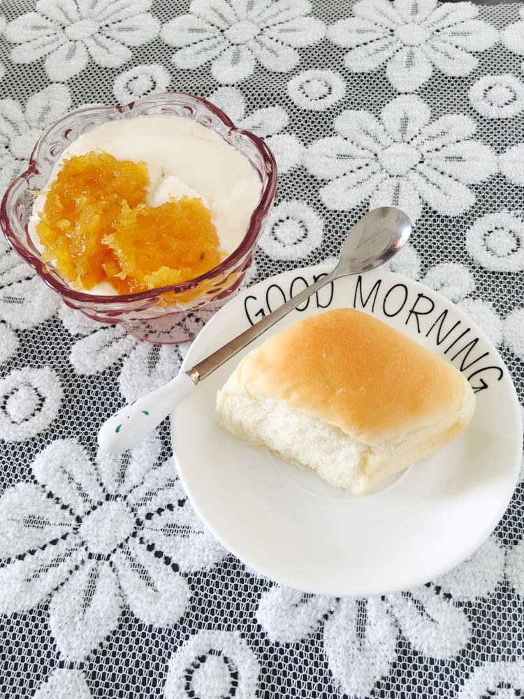 自制酸奶拌菠萝果酱,搭配酸奶小面包。很快捷的早餐。