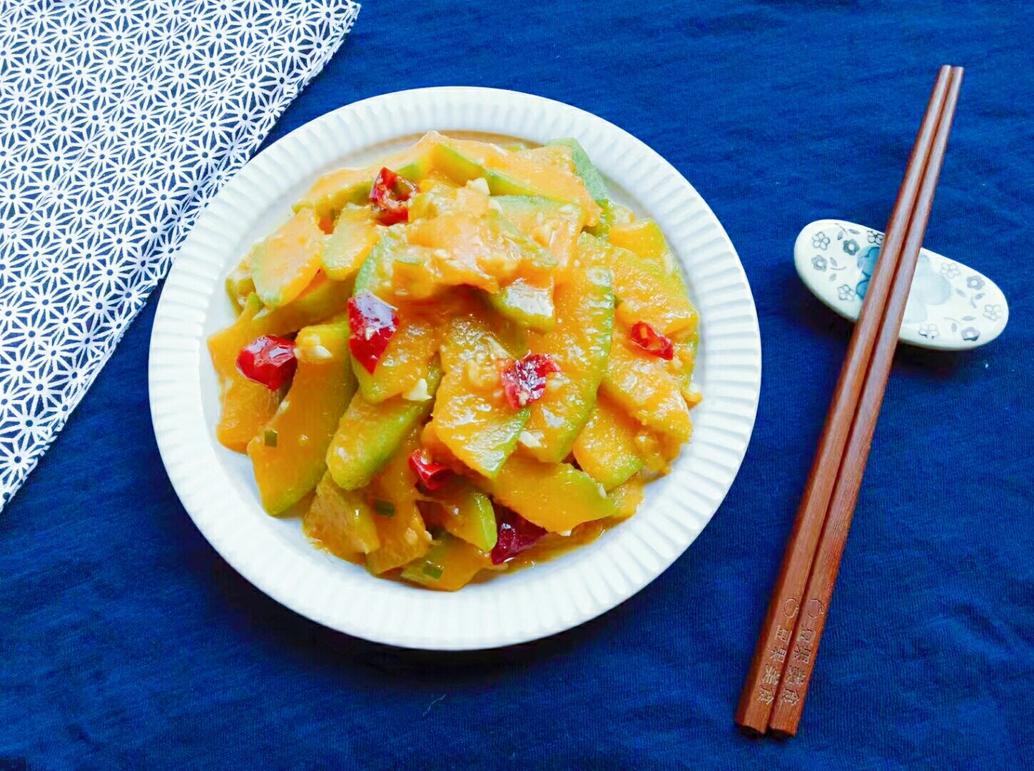 南瓜 蒜 小葱 姜 干辣椒 生抽 盐 鸡精