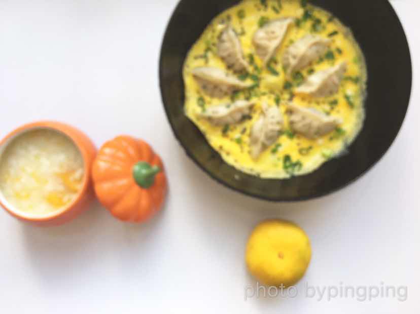 南瓜粥 抱蛋煎饺 橘子