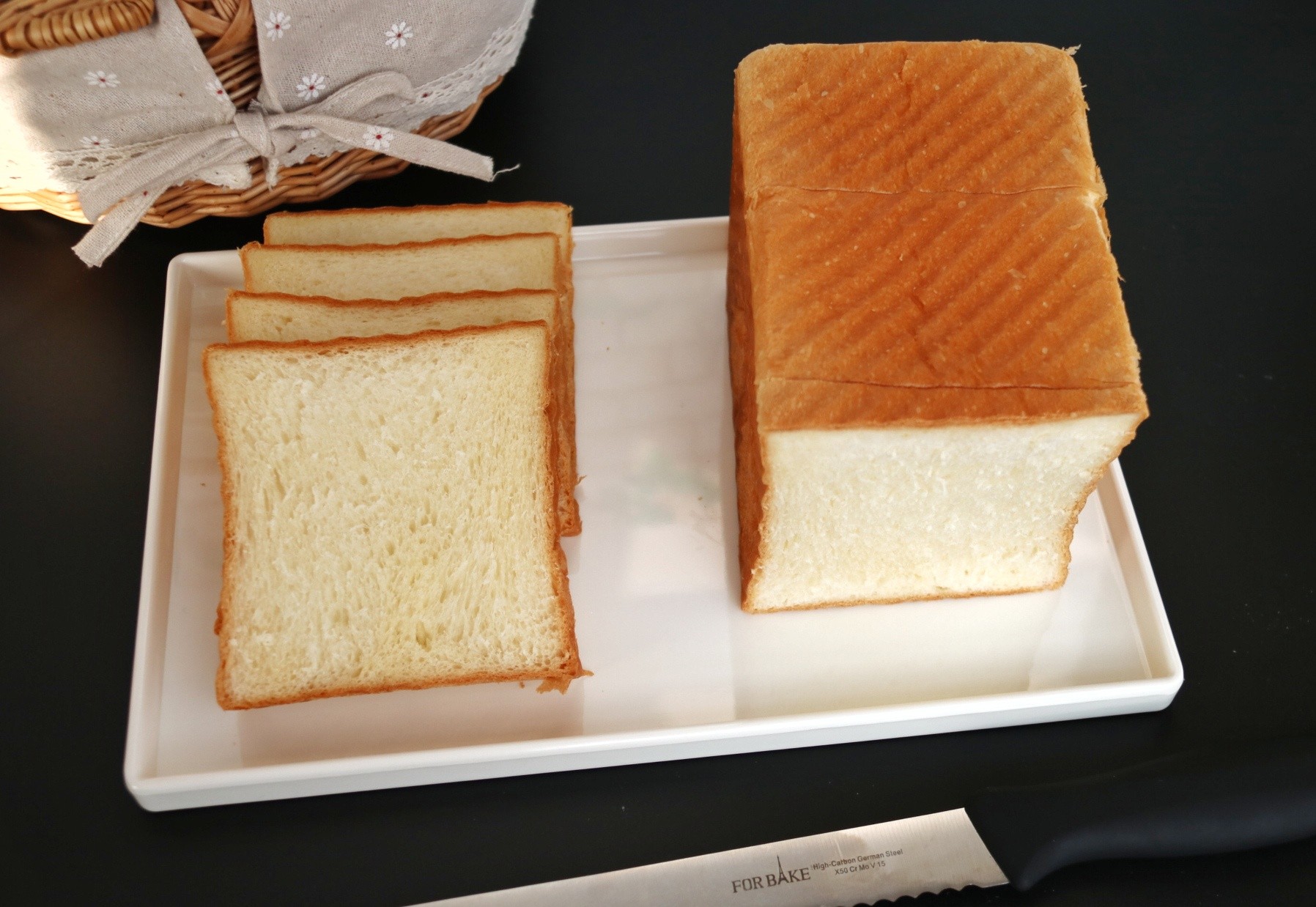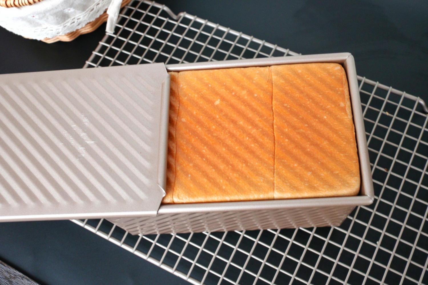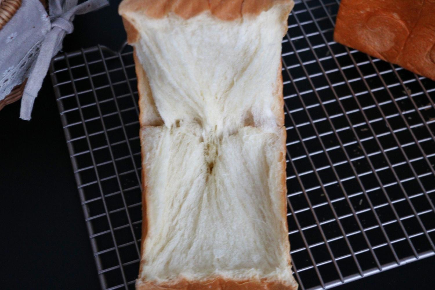 一次发酵的快手吐司,每次都是烤两个,组织超棒有没有。