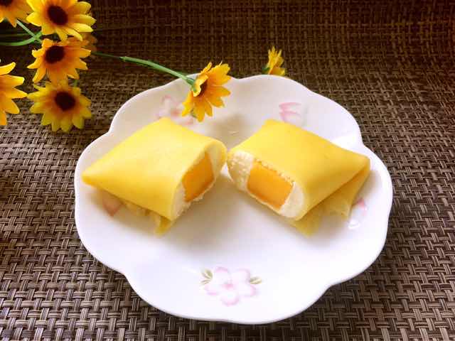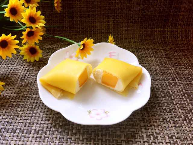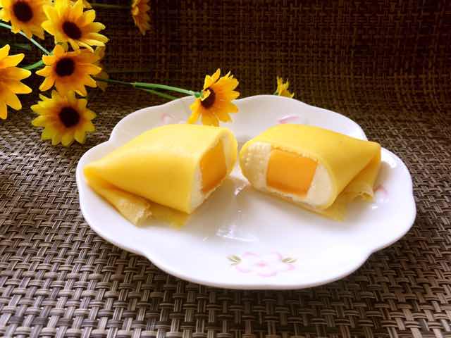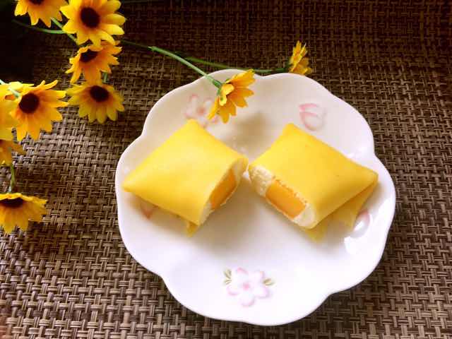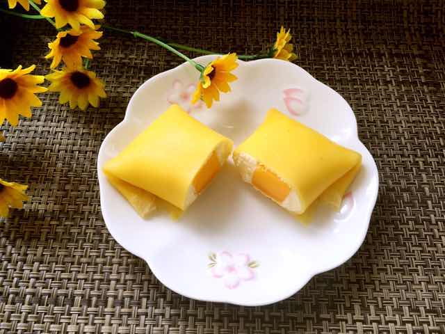 蛋黄做出来的班戟,颜色黄黄的,很漂亮