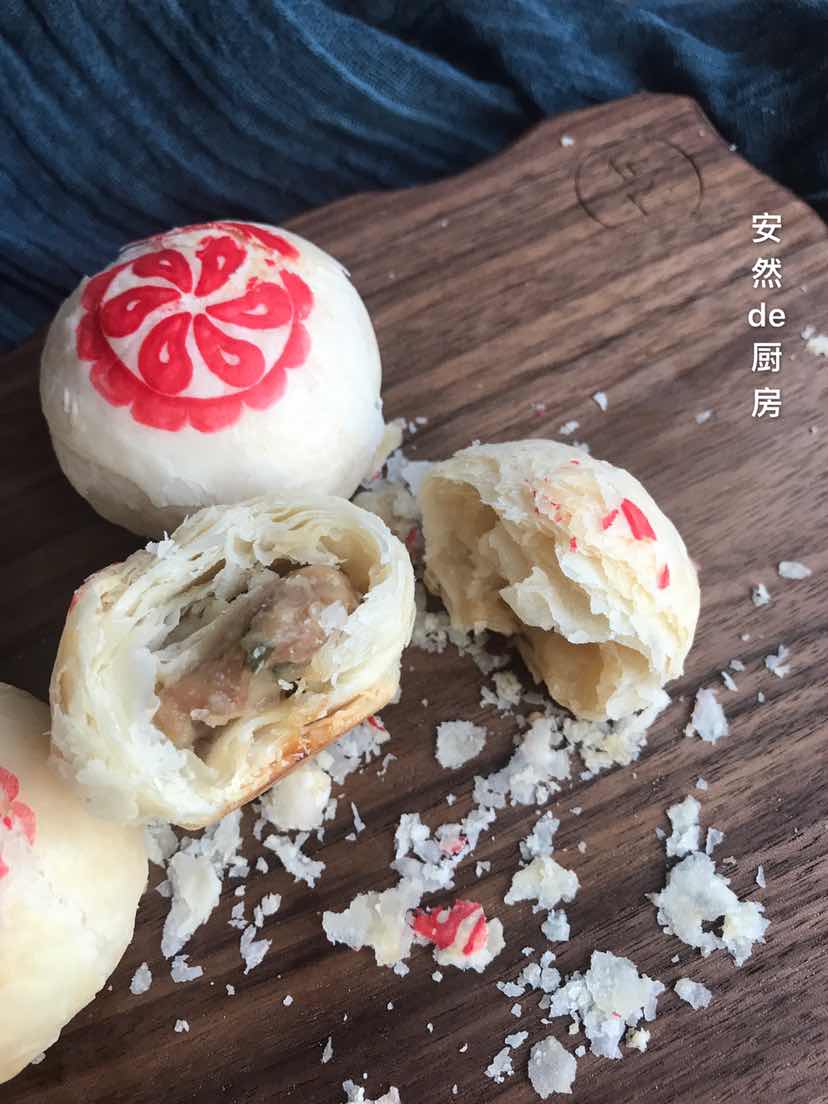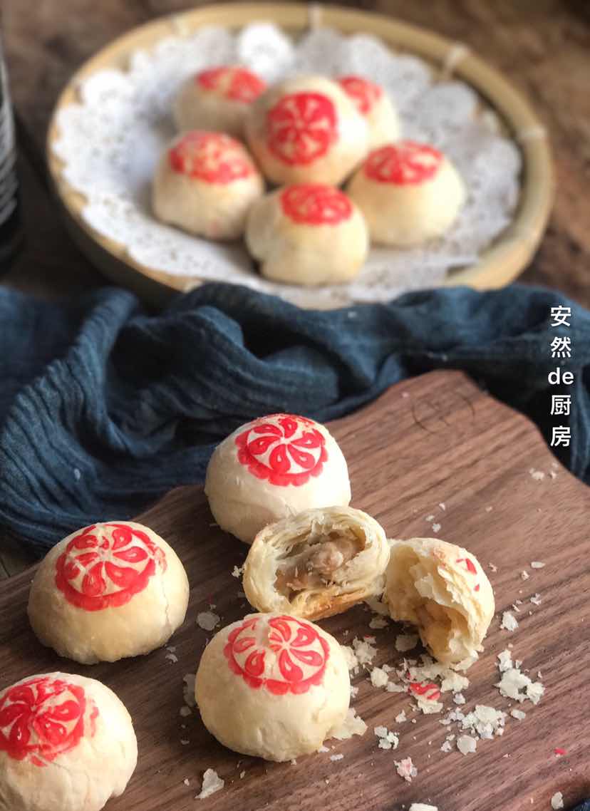 低筋面粉(水油皮材料) 高筋面粉(水油皮材料) 猪油(水油皮材料) 糖粉(水油皮材料) 清水(水油皮材料) 低筋面粉(油酥材料) 猪油(油酥材料)