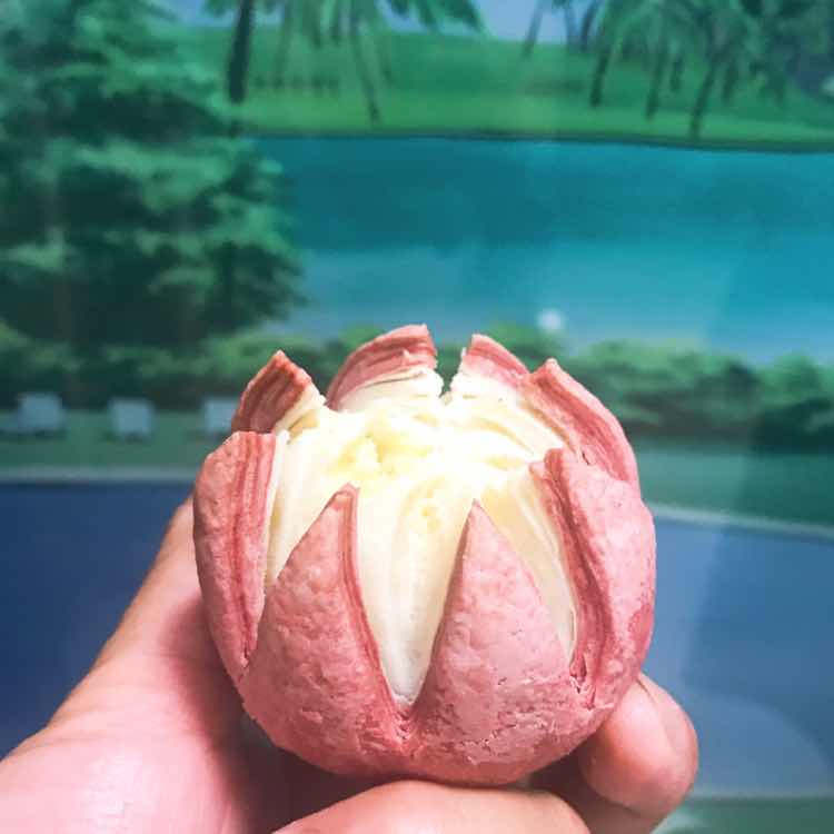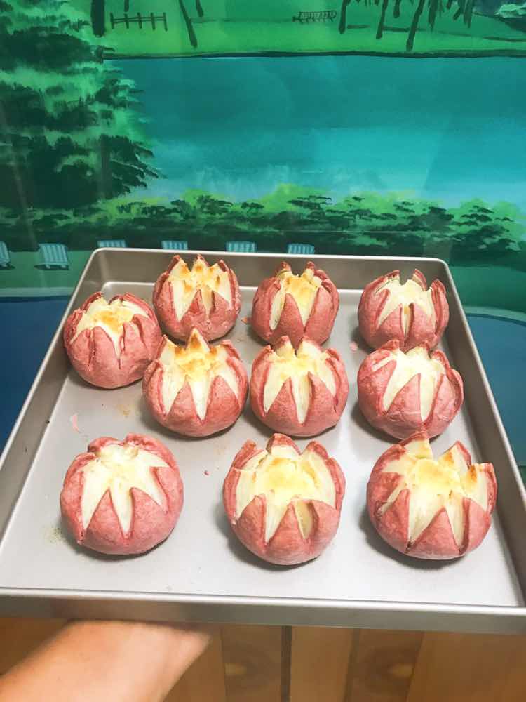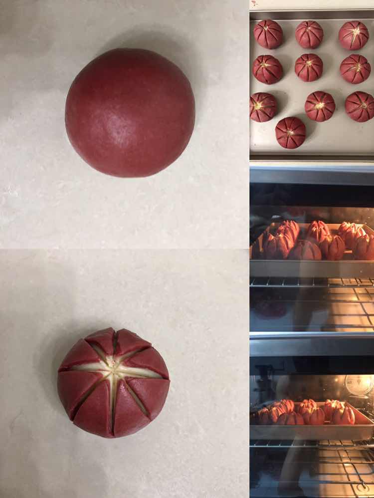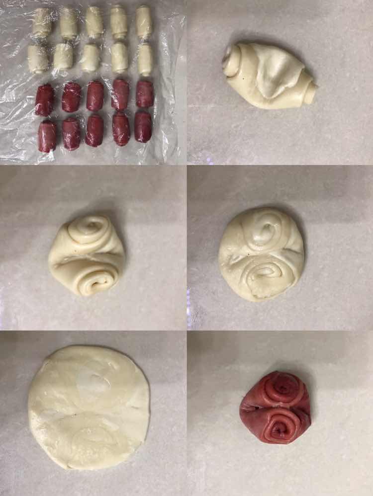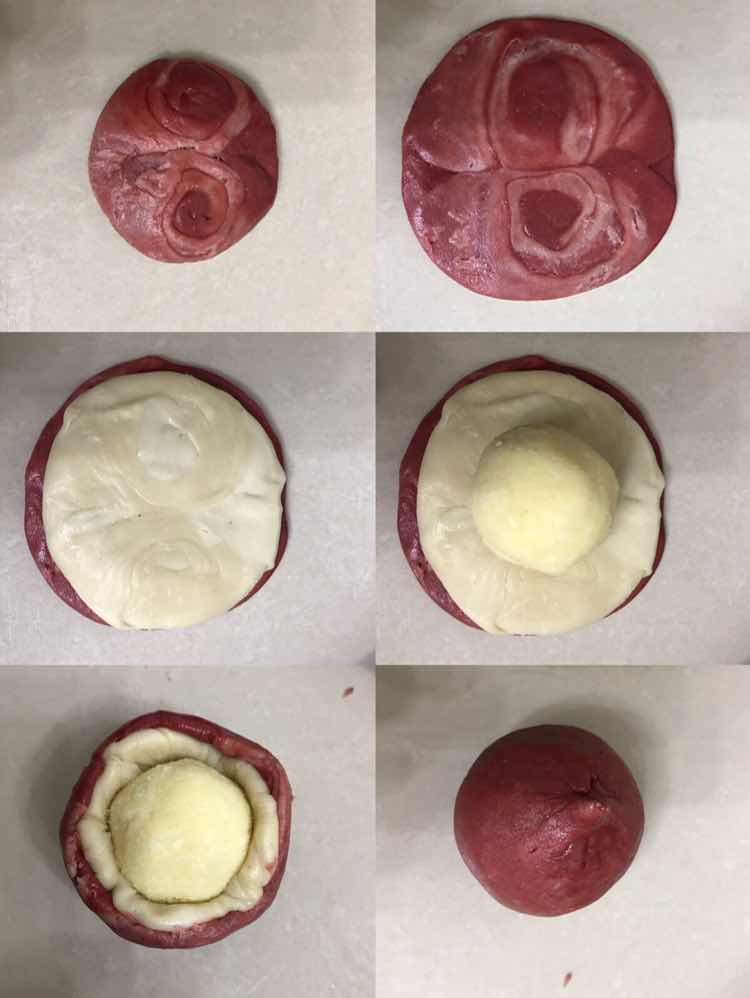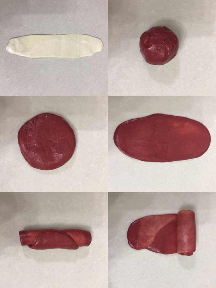 2 拿出来分二份之一,加入红曲粉揉抣匀。