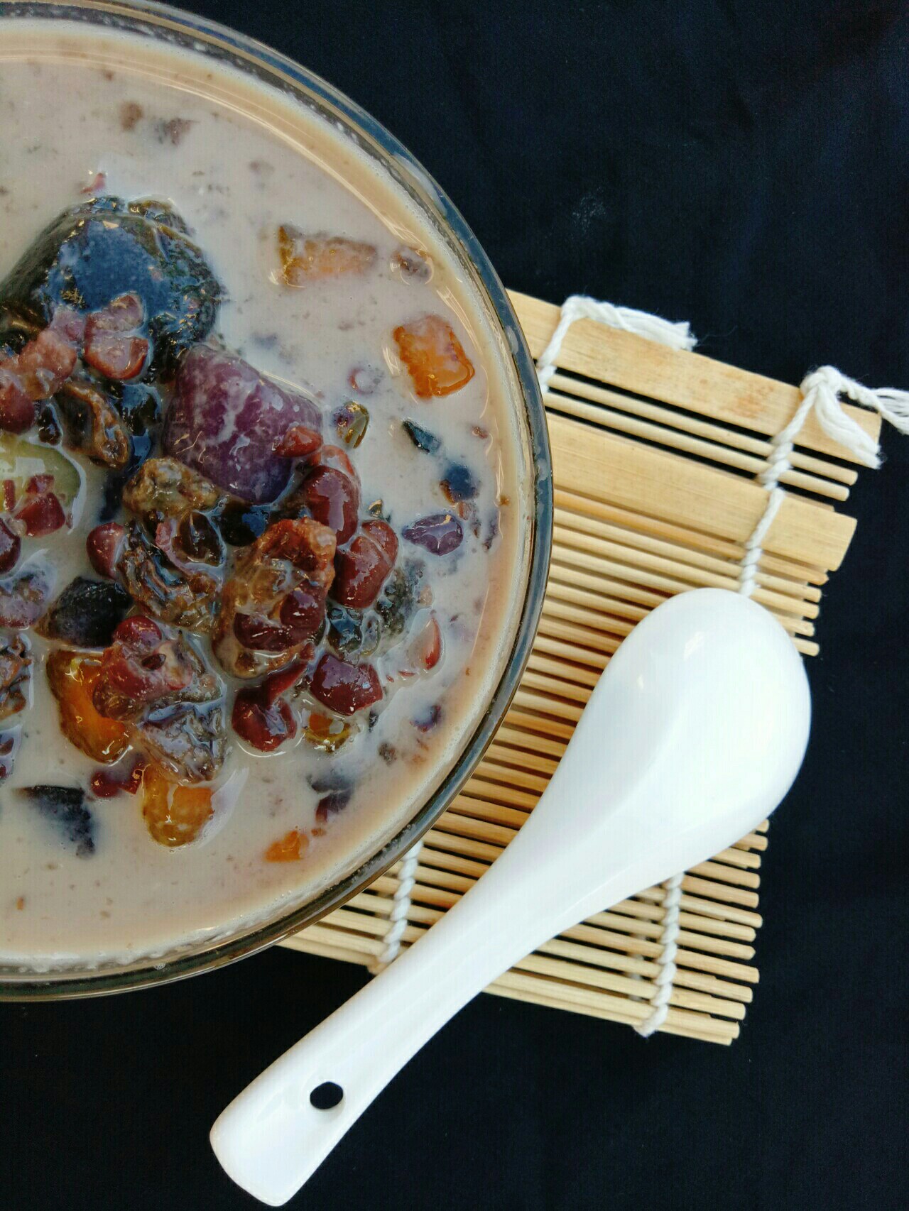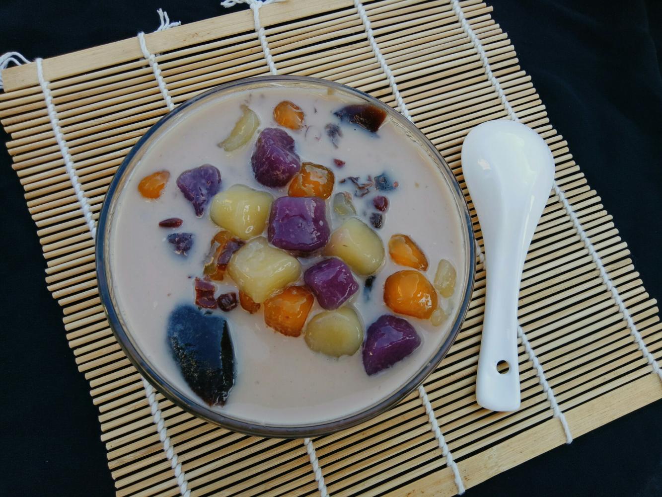 第一次来到味游 ~\(≧▽≦)/~ 芋圆+黑凉粉+蜜红豆+葡萄干+奶茶 全部都是自己手工自制的 (ง •̀_•́)ง