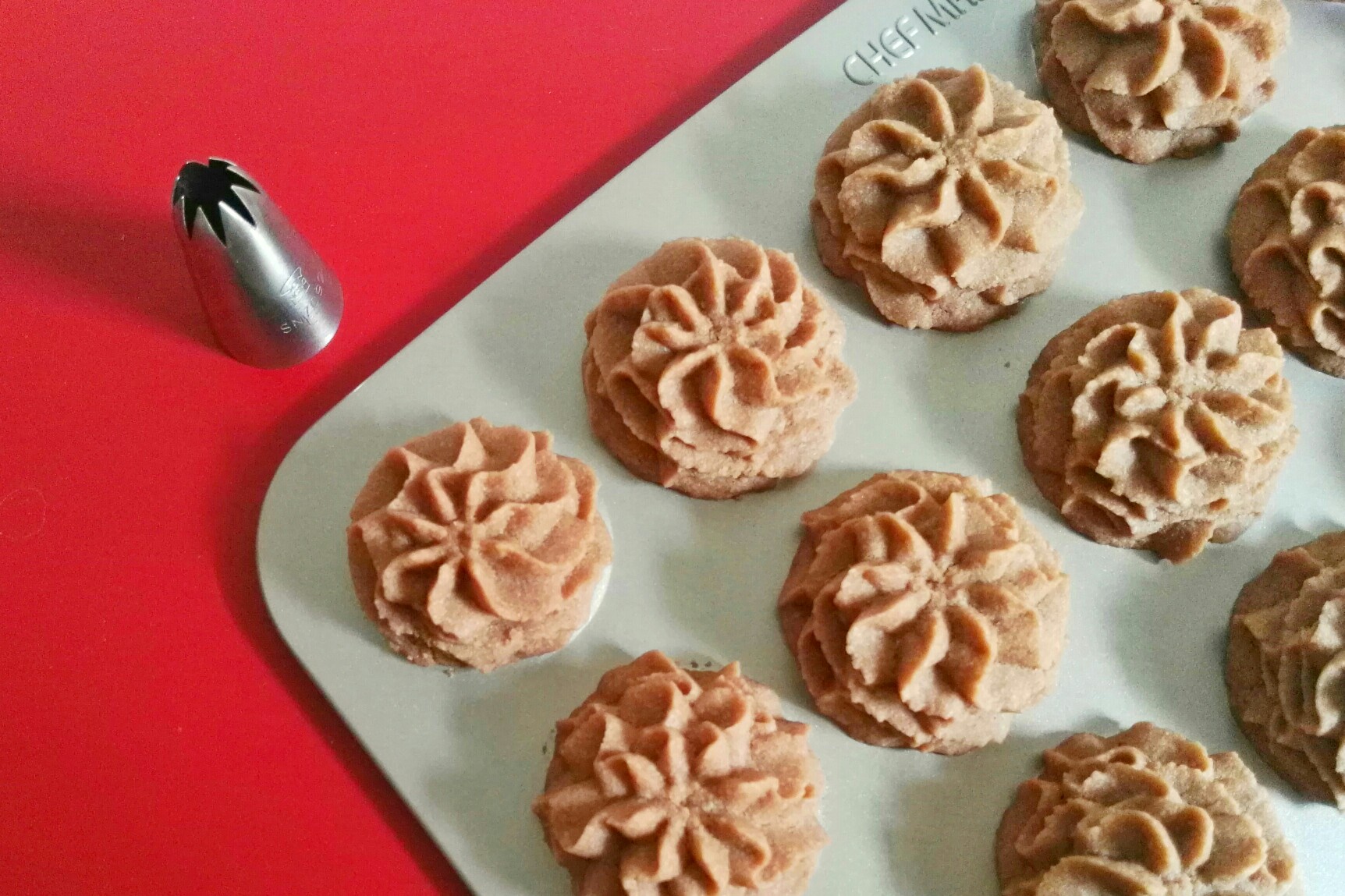 老师的配方超赞,这次做了两种口味的曲奇……杏仁口味和可可口味,相当好吃,口感丰富、相当酥松、入口即化,回味无穷,喜欢曲奇的盆友不妨一试,会给你带来惊喜哦……