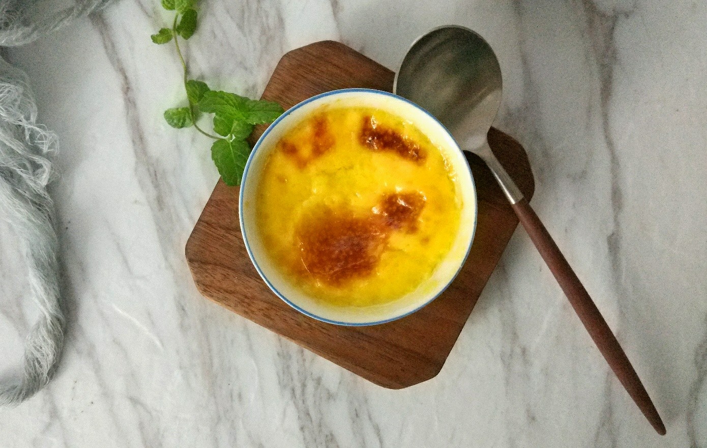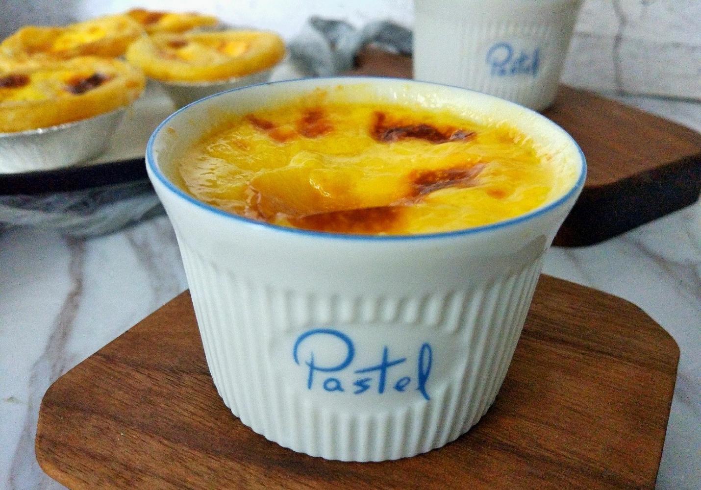 放了黄桃罐头里的黄桃,(罐头自己做的)做了些蛋挞,多出来的液体用舒芙蕾杯子装着。